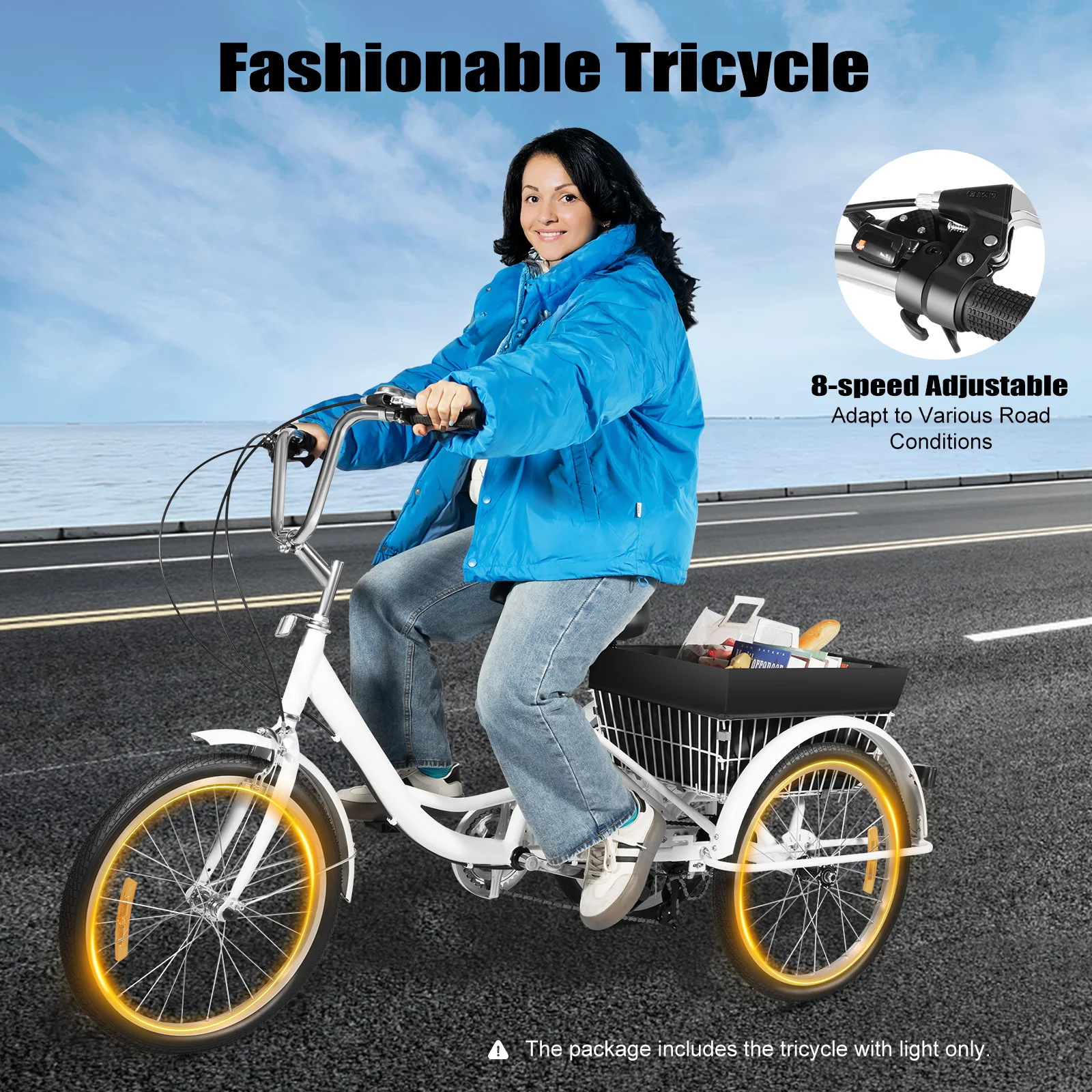 8-Speed Adult Tricycle with Carbon Steel Frame