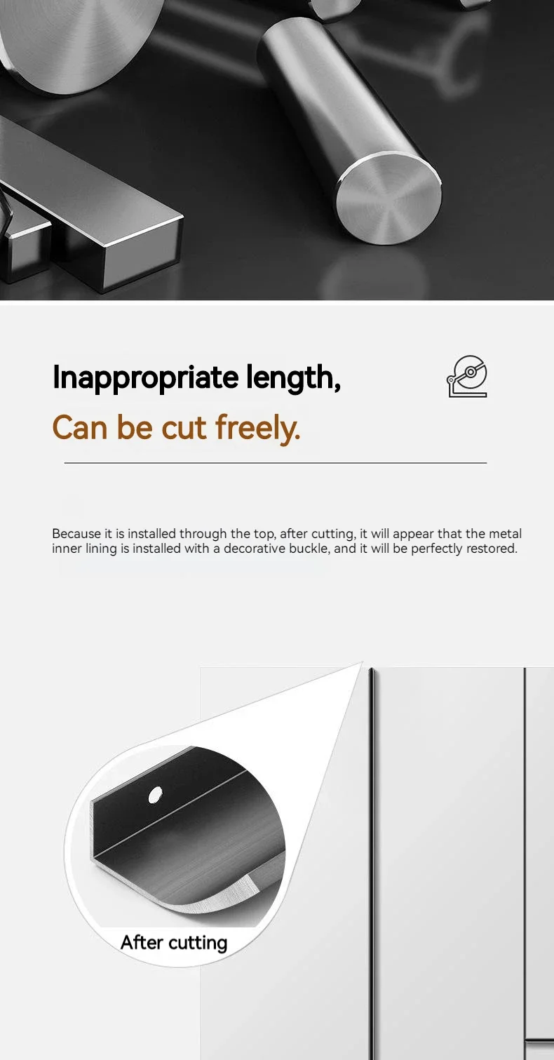 Discover the perfect blend of functionality and elegance with our range of 80-1200 mm Aluminum Invisible Cabinet Handles. These edge-sealed drawer pulls are designed to add a touch of modern sophistication to your kitchen, wardrobe, or any furniture piece. Experience a seamless and minimalist aesthetic that enhances the overall look and feel of your living space.