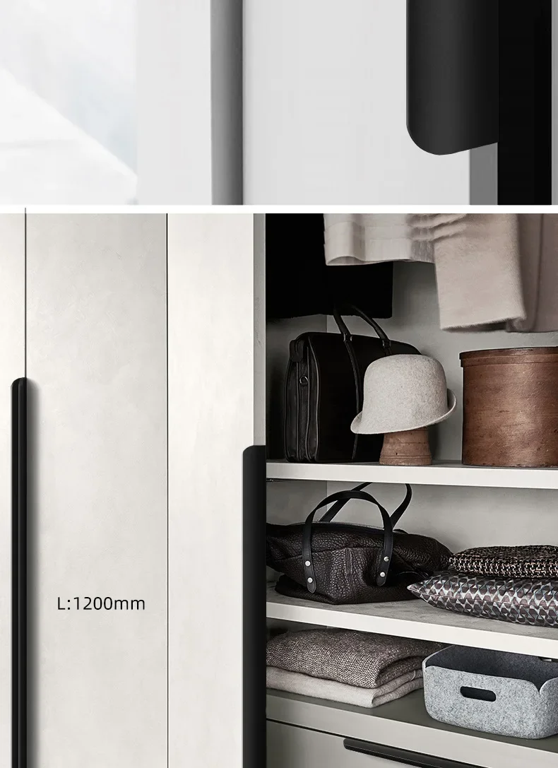 80-1200mm Aluminum Invisible Cabinet Handles,Edge-Sealed Drawer Pulls, Modern Curved Wardrobe Door Handles for Kitchen Furniture