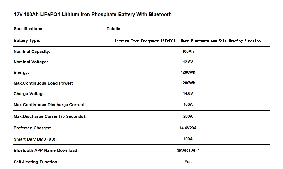 This LiFePO4 battery pack is ideal for anyone seeking a dependable and efficient energy storage solution. The extended 8000 cycle life translates to lower replacement costs and reduced environmental impact over time. Bluetooth integration offers convenient, wireless access to battery health data, helping users maintain optimal performance. The heating feature ensures consistent operation even in cold climates, making it perfect for outdoor solar setups or electric vehicles used year-round.