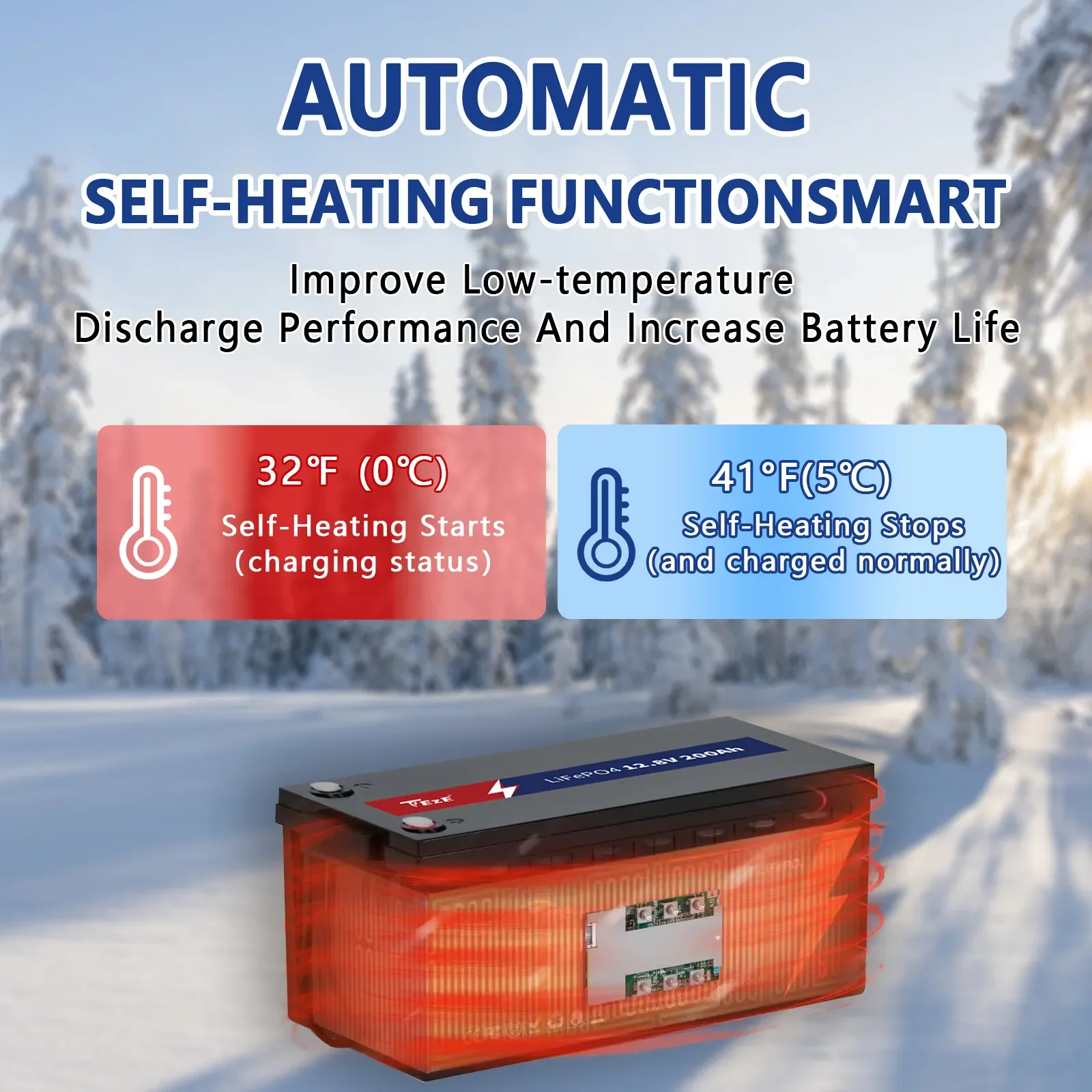 - Built-in heating function to maintain battery performance in low-temperature environments