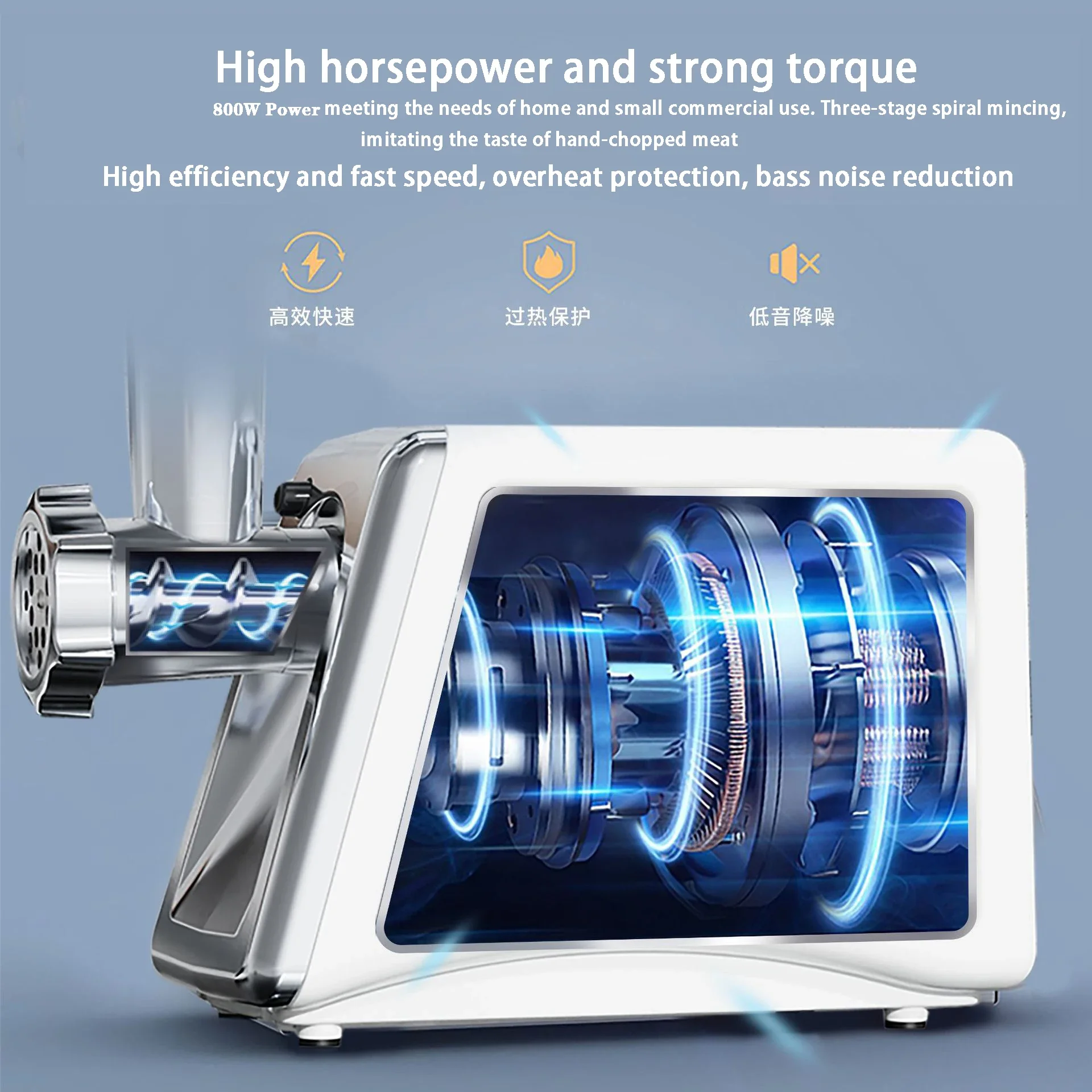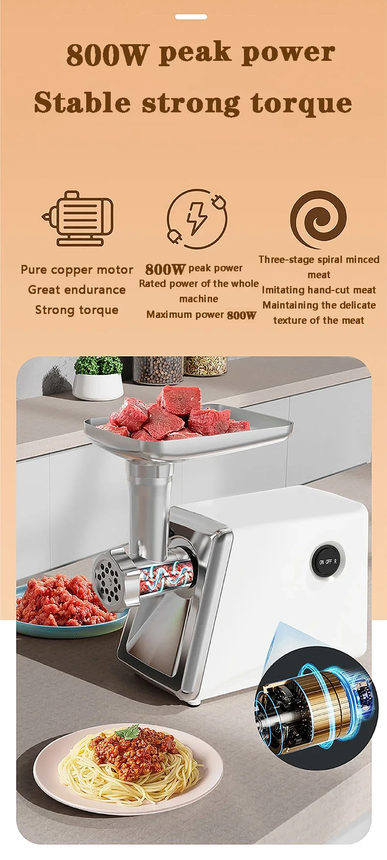– Powerful 800W Motor: Delivers robust performance for grinding various types of meat, from poultry to beef, with consistent results.