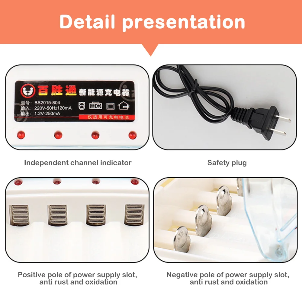 Sc55493d6aba846d88ab7abd38cc5e9f6Q 2.webpAA AAA Battery Fast Charger 220V Ni-Cd 4 Slots Rechargeable Smart Charger US / EU Plug for 1.2V Battery Charging With Cover