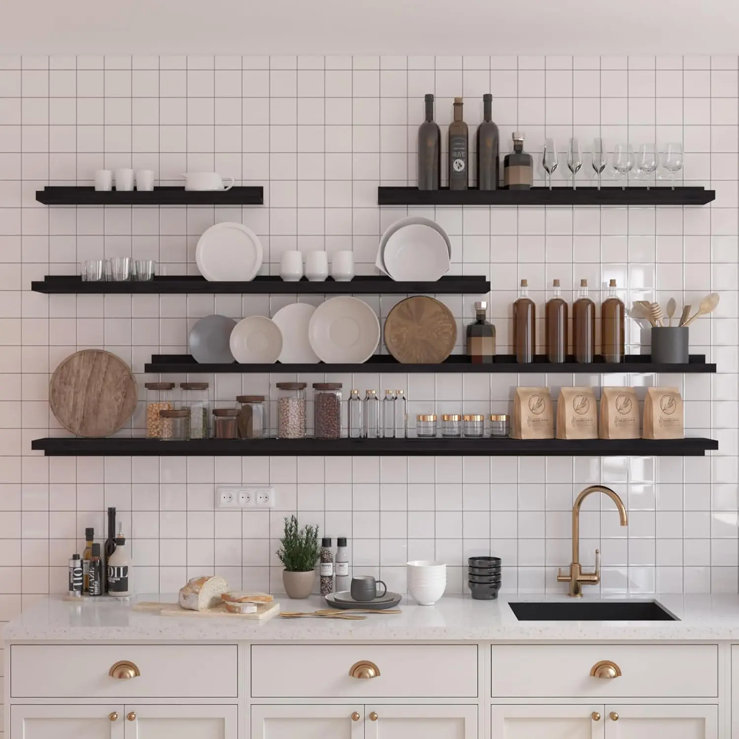 Constructed from robust aluminum alloy, these shelves are built to withstand the test of time. Their smooth, powder-coated finish in classic black and pristine white is not only aesthetically pleasing but also highly resistant to corrosion and wear. To care for your shelves, simply wipe them clean with a damp cloth and mild soap. Avoid abrasive cleaners to preserve their pristine finish. These shelves are designed for easy assembly and installation, with all necessary hardware for the no-drilling method included. Experience the perfect blend of form and function with these exceptional floating shelves.