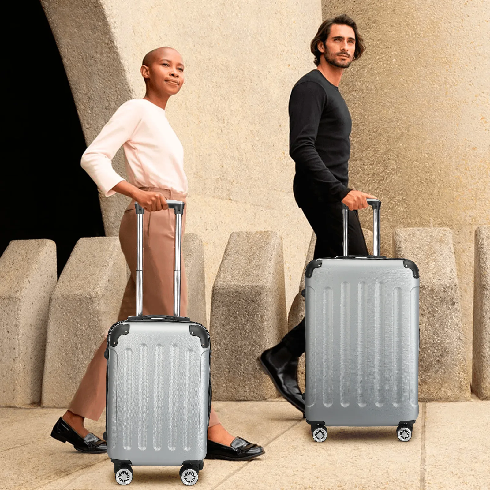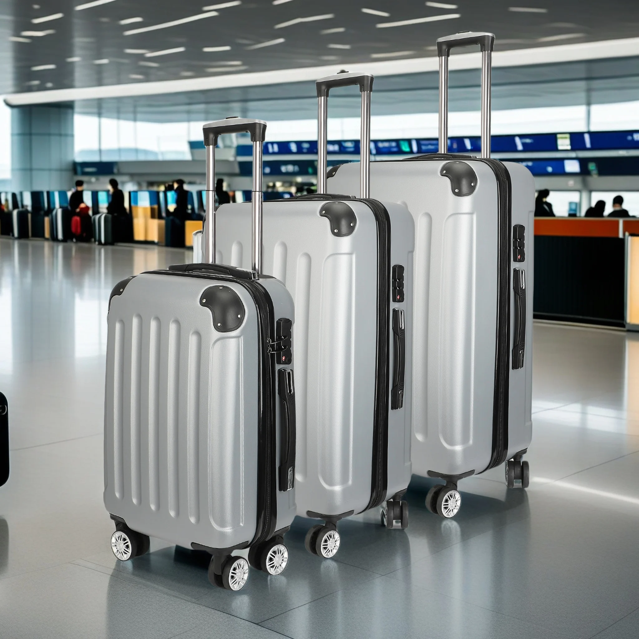 - Durable ABS Construction: Crafted from high-quality ABS material, these suitcases are built to withstand the rigors of travel, offering superior protection for your possessions against bumps and scratches.