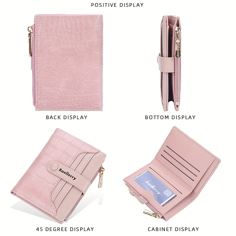 The Baellerry short wallet is designed to simplify your daily routine by keeping your money and cards neatly organized in a compact form. Its buckle closure offers enhanced security, preventing accidental openings and loss of valuables. The wallet’s size is perfect for women who prefer minimalism without sacrificing functionality, allowing you to carry it effortlessly wherever you go. With multiple color options, it can complement any outfit or occasion, making it a versatile accessory that combines fashion with convenience.