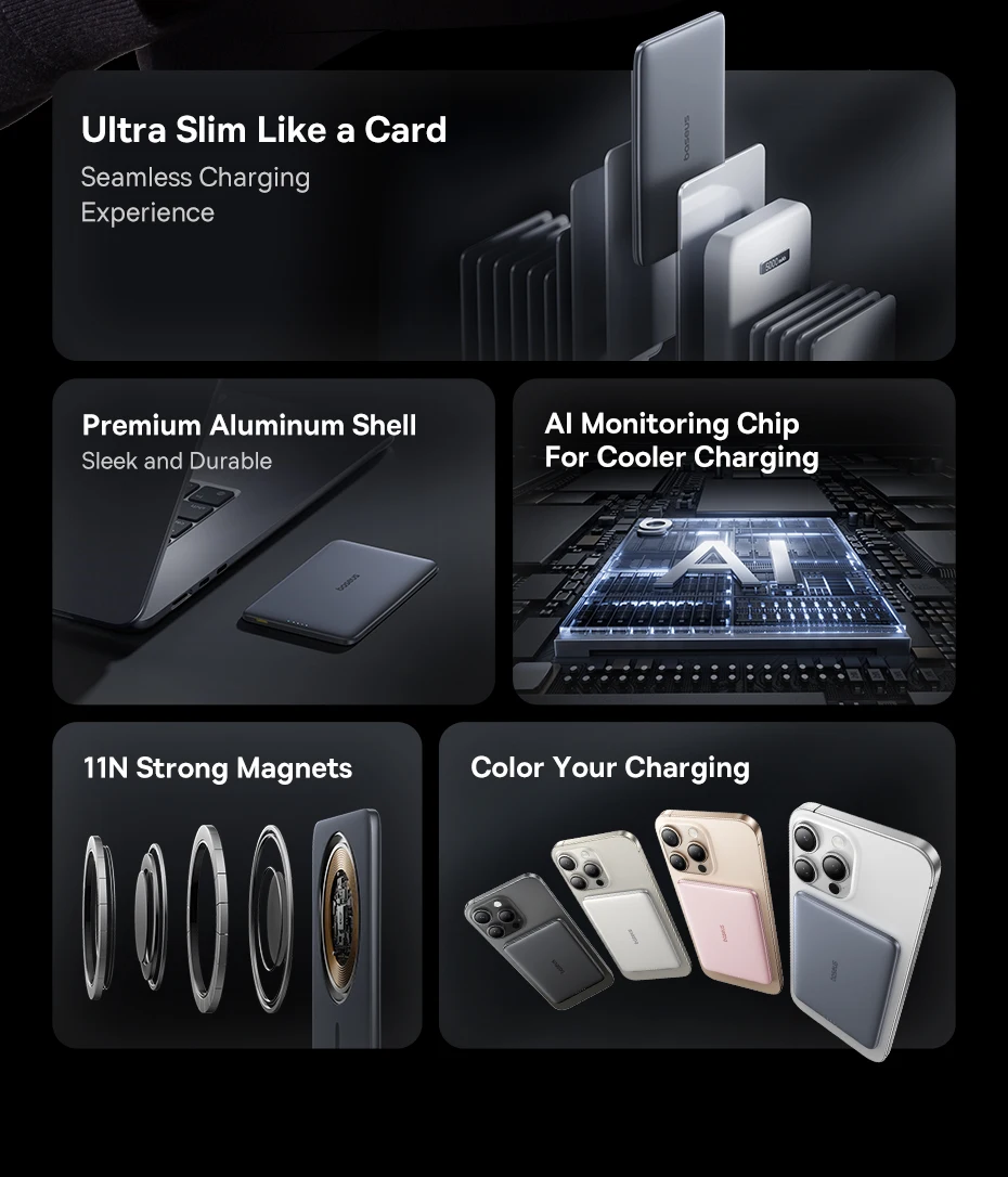 This magnetic power bank enhances your mobile experience by eliminating the hassle of tangled cables and bulky chargers. Its magnetic attachment ensures a secure connection for wireless charging, allowing you to power up your phone effortlessly while on the move. The slim and lightweight build means you can carry it anywhere – from business meetings to outdoor adventures – without added bulk. Fast wired charging supports quick energy top-ups, making it ideal for busy lifestyles. Perfect for users seeking a reliable, stylish, and practical power bank that blends portability and performance seamlessly.