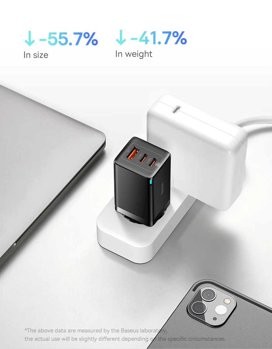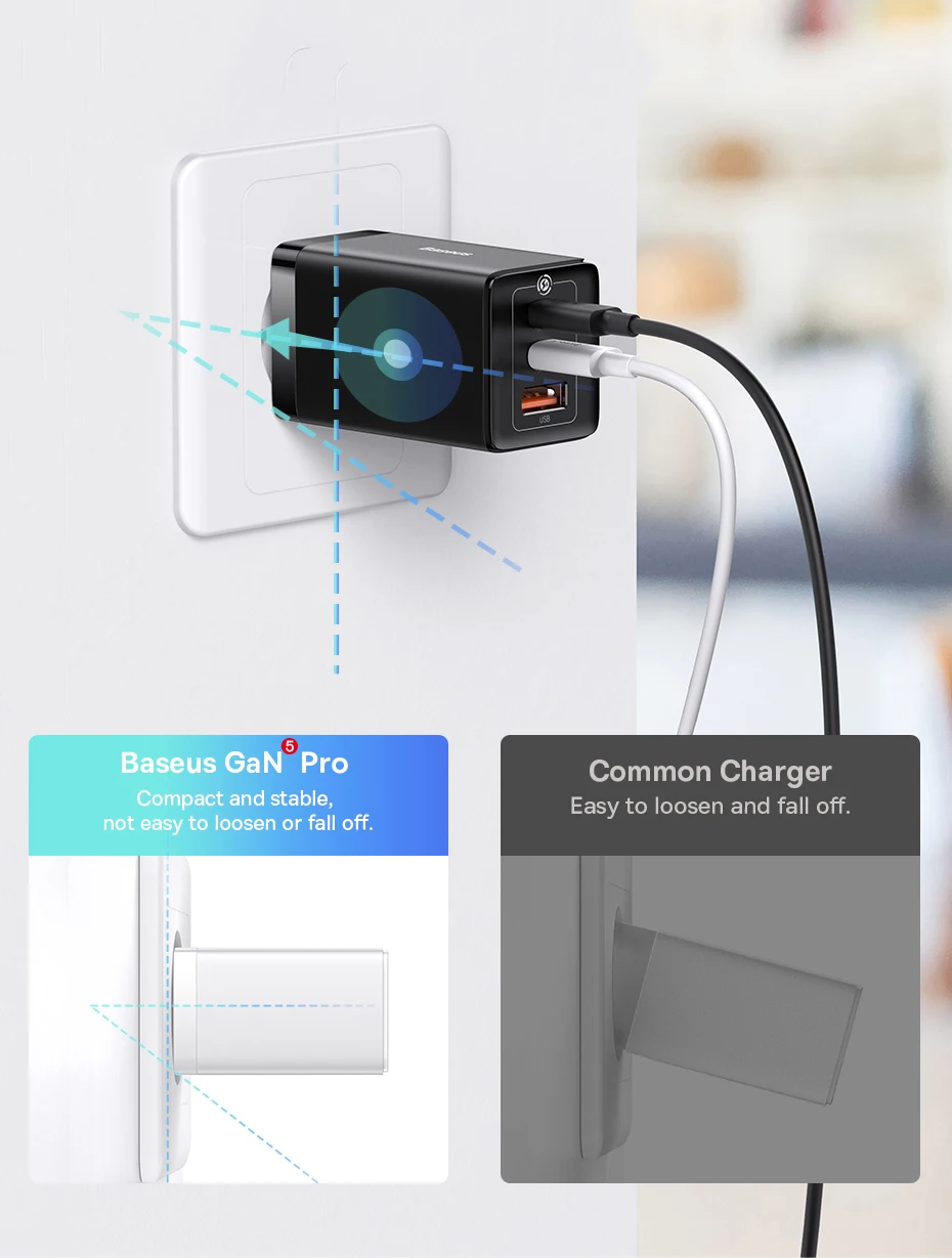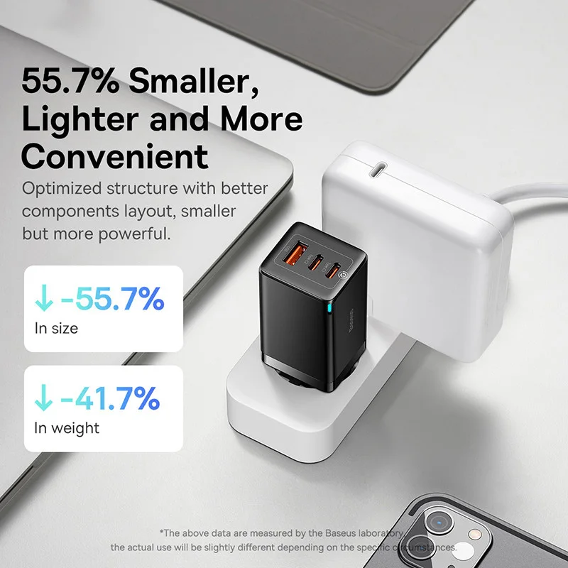 The Baseus 65W GaN Charger is engineered to keep your devices charged quickly and safely, minimizing downtime whether at home, office, or on the go. Its high wattage output means laptops and smartphones reach full charge faster compared to conventional chargers. The charger’s compatibility with multiple fast charge protocols ensures optimal charging speeds tailored to each device. Its small footprint makes it easy to carry, eliminating the need for multiple chargers and simplifying your tech accessories.