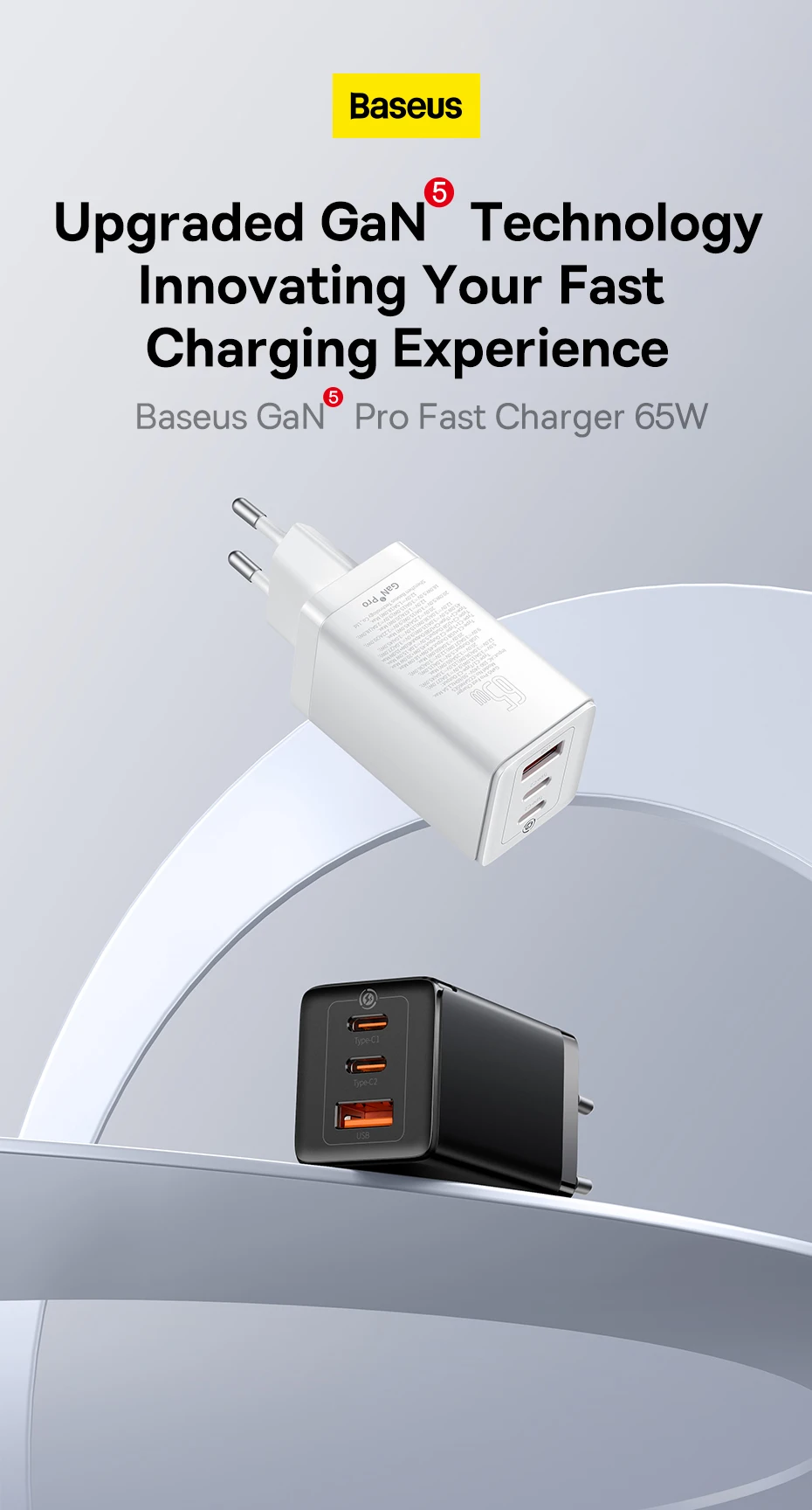 Baseus 65W GaN Charger Quick Charge Type C PD QC Charger USB Portable Fast Charger for Laptop and iPhone