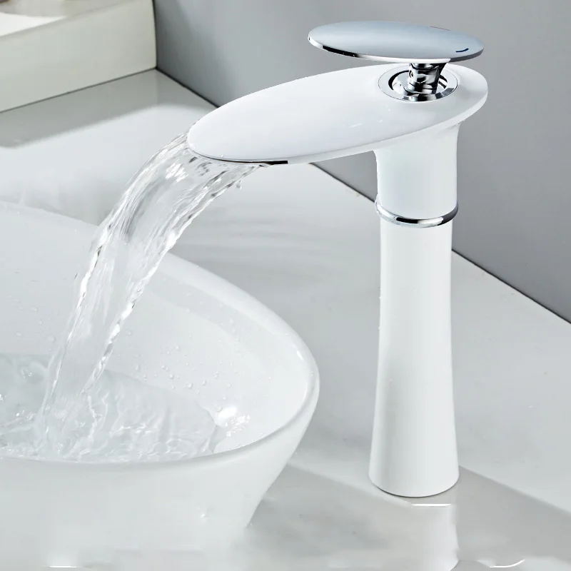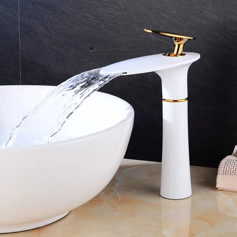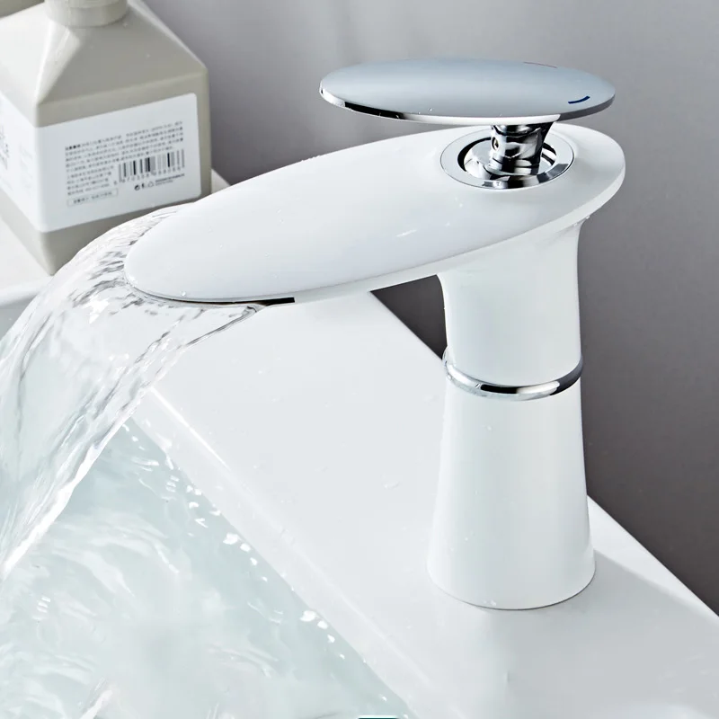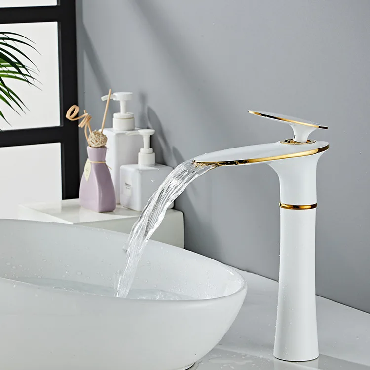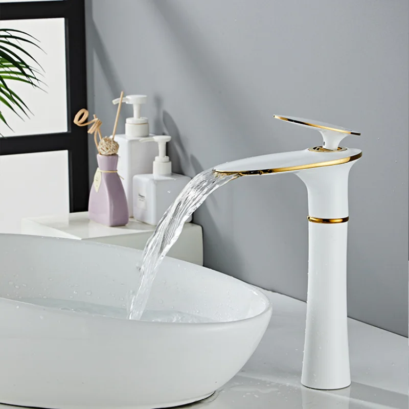 Basin Faucet Copper Single-Hole Waterfall Faucet Hot and Cold Water Basin Washbasin for Bathroom Vanity European-Style Faucet