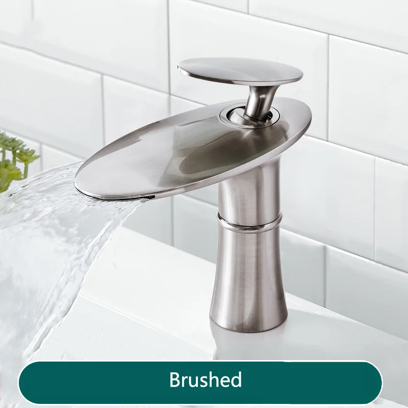 Elevate your bathroom with this European-style copper waterfall faucet. Enjoy smooth hot/cold water flow and a stunning basin accent. Available in multiple finishes and lengths.