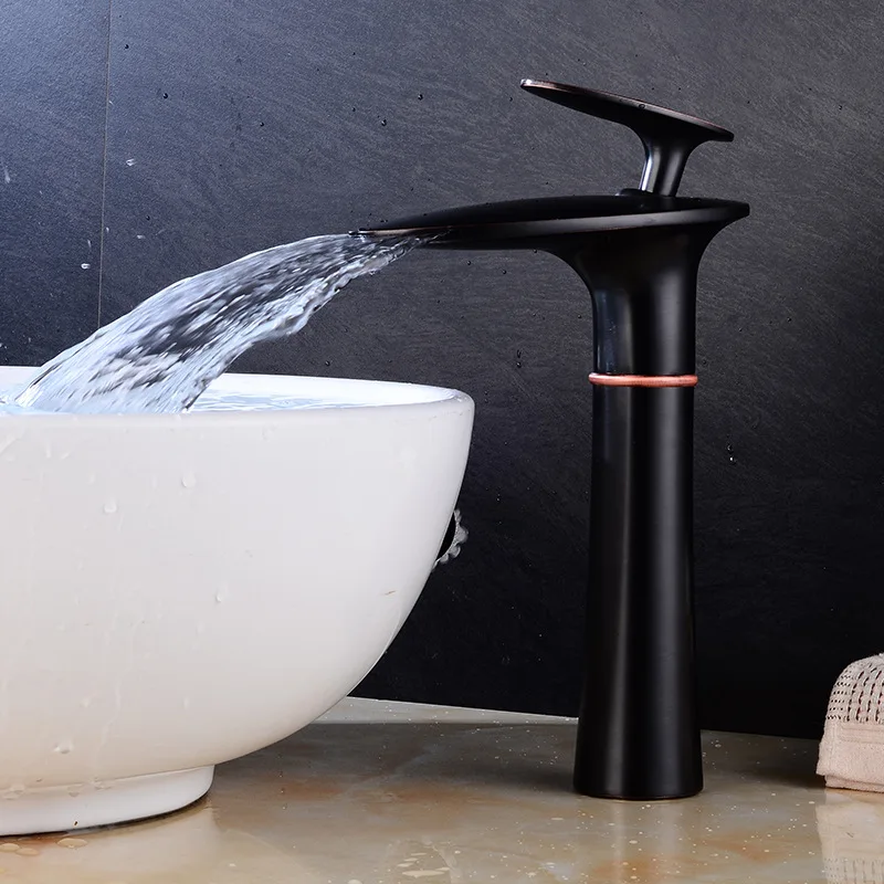 This waterfall faucet is more than just a functional fixture; it’s a statement piece that enhances the overall appeal of your bathroom. The gentle, cascading water flow provides a calming sensory experience, making handwashing and daily ablutions a more enjoyable ritual. Its robust copper construction guarantees years of reliable use, resisting tarnishing and wear. The single-hole design simplifies installation, making it an ideal upgrade for existing bathrooms or a perfect choice for new renovations. Whether you’re looking to create a tranquil en-suite, a stylish guest bathroom, or a luxurious powder room, this faucet delivers both form and function. Select the finish and height that best suits your basin and personal aesthetic for a truly customized look.