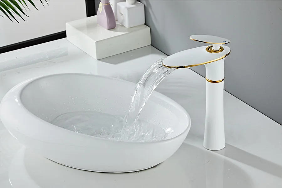 The faucet is constructed from solid copper, ensuring excellent durability and resistance to mineral buildup. The internal ceramic disc valve is designed for a lifespan of over 500,000 uses, guaranteeing a leak-free experience. To maintain the beauty of your faucet, we recommend regular cleaning with a soft, damp cloth and mild soap. Avoid using abrasive cleaners or harsh chemicals that could damage the finish. This faucet is compatible with standard plumbing connections and includes all necessary mounting hardware for a straightforward installation process. Elevate your bathroom’s style and functionality with this exquisite European-inspired waterfall faucet.