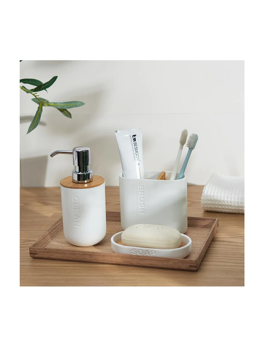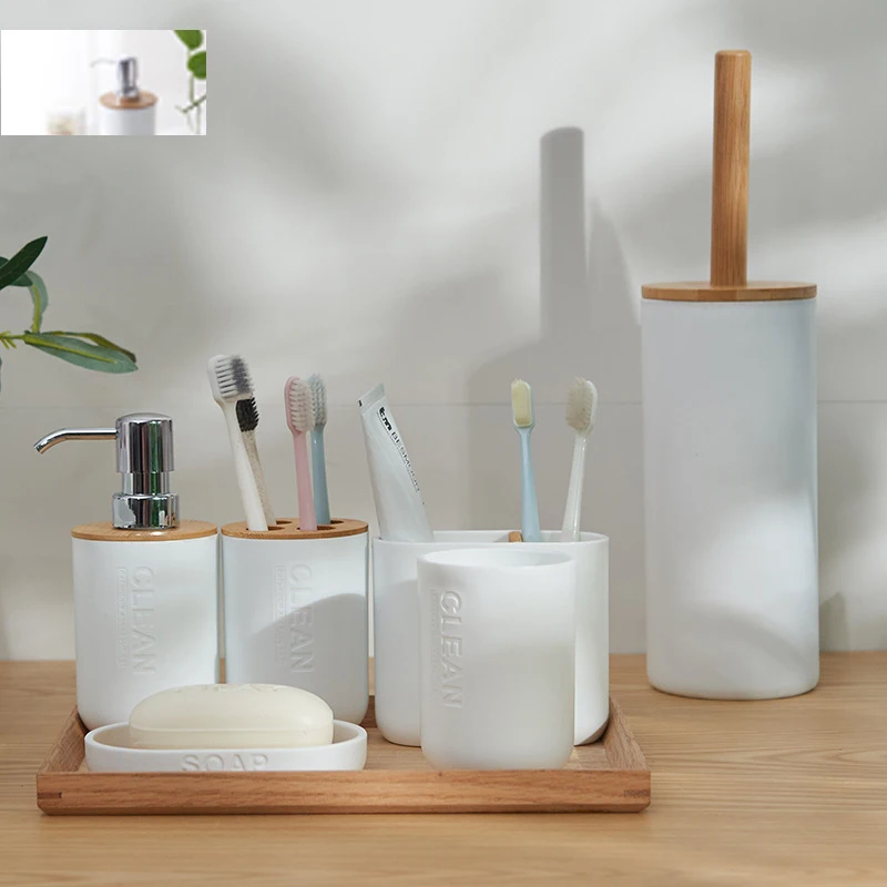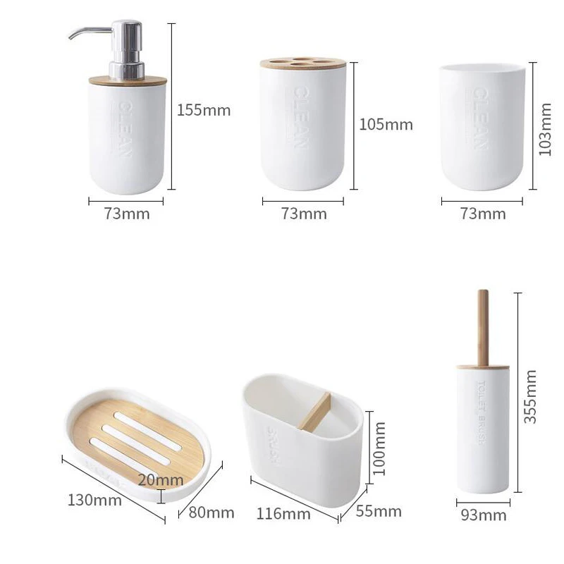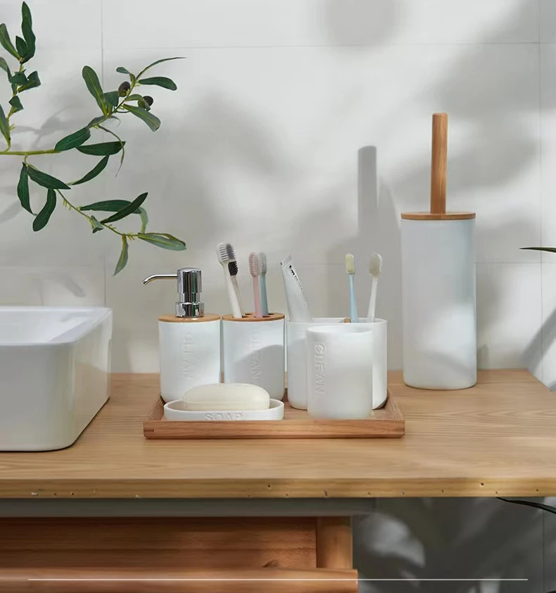 - Comprehensive Set Options: Choose from a versatile range of sets to perfectly suit your requirements. Options include a 3-piece set (typically Soap Dispenser, Toothbrush Holder, Tumbler), a 4-piece set (adding a Soap Dish), a 6-piece set (including a Toilet Brush for complete coordination), or individual pieces like a Lotion Dispenser or Wooden Bottle Cup for bespoke arrangements.