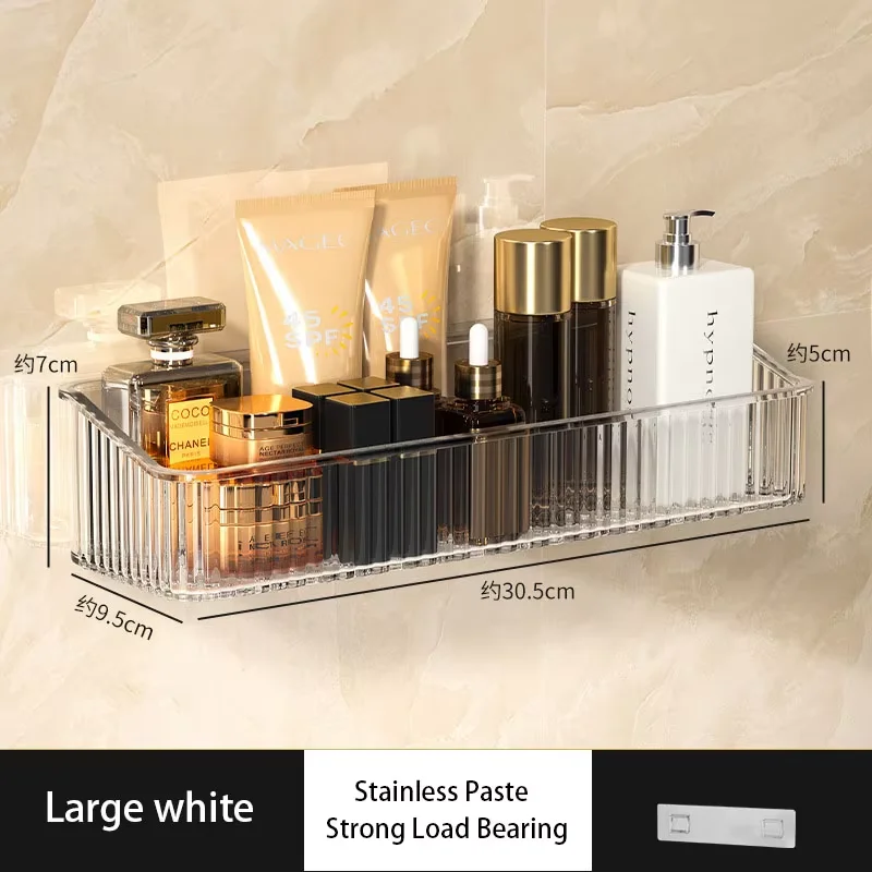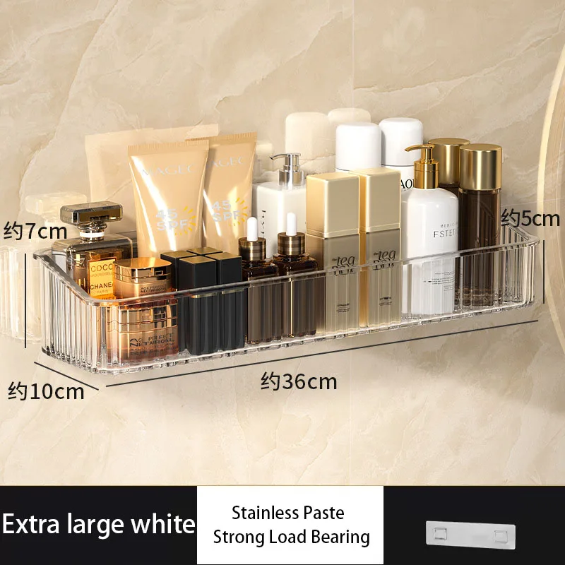 Imagine a bathroom where everything has its place. Our Bathroom Storage Rack brings that vision to life. Say goodbye to crowded shelves and misplaced items. This rack provides dedicated spots for all your bathroom necessities, from your morning skincare routine to your evening relaxation essentials. Its strong adhesive backing ensures a secure hold on various smooth surfaces, including tiles, glass, and painted walls, without leaving any residue.