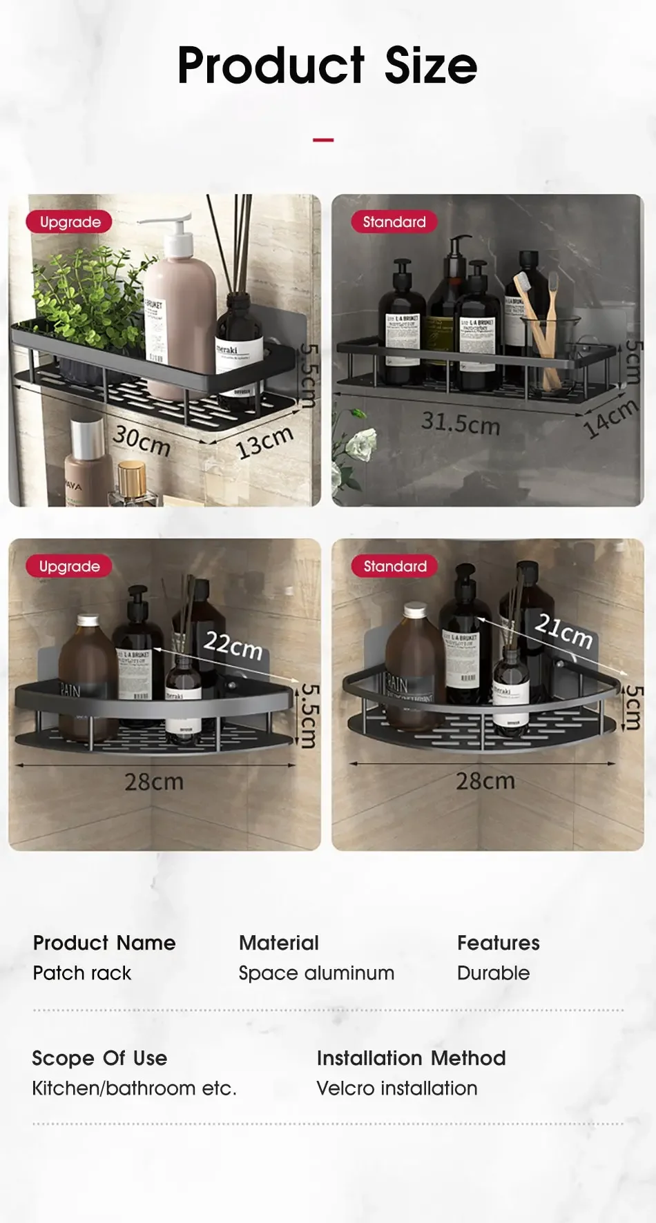 Imagine stepping into a shower where your favorite shampoo and conditioner are always at hand, neatly organized and easily accessible. Our No-Drill Corner Shelf makes this a reality. The robust adhesive ensures the shelf stays firmly in place, eliminating the frustration of falling shelves and damaged walls. Its corner-fitting design is a brilliant solution for small bathrooms, transforming unused nooks into valuable storage real estate.