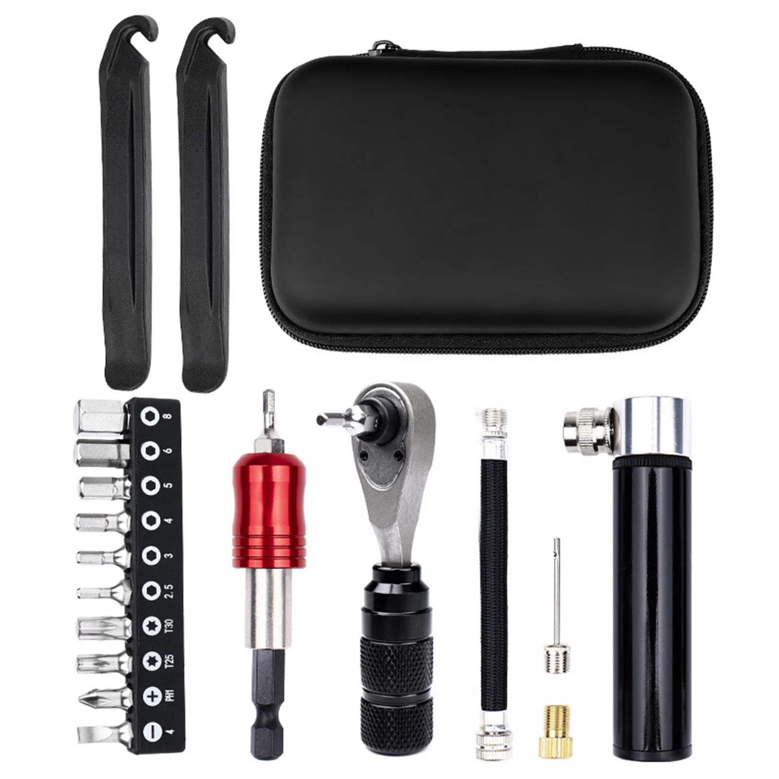This repair kit is the perfect companion for cyclists who value preparedness and convenience. Its comprehensive tool selection allows you to tackle tire punctures, adjust components, and perform essential maintenance without the need for bulky equipment. The ergonomic ratchet wrench ensures precision and ease of use, reducing repair time and frustration. Simply carry the kit in your backpack or bike bag and enjoy peace of mind on every ride.