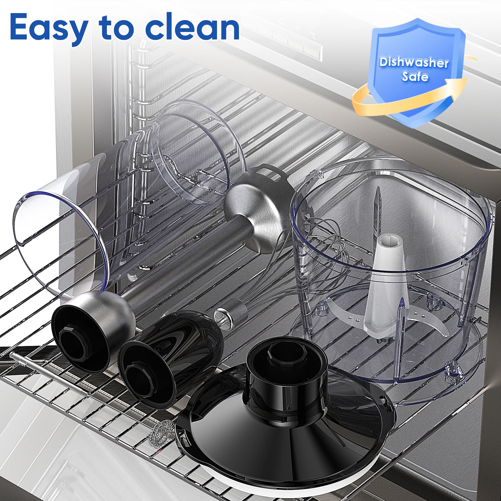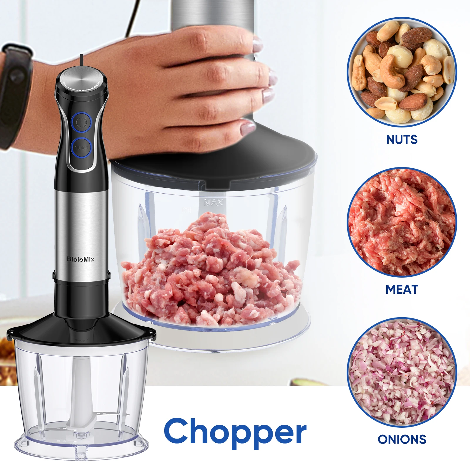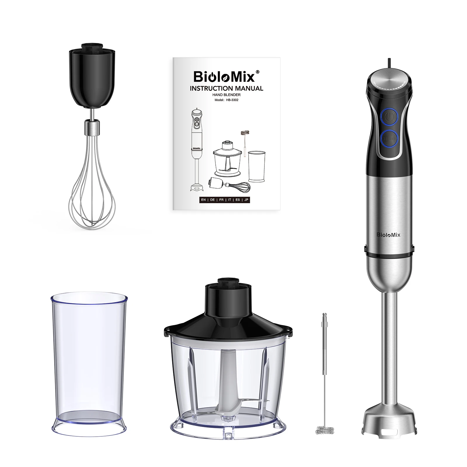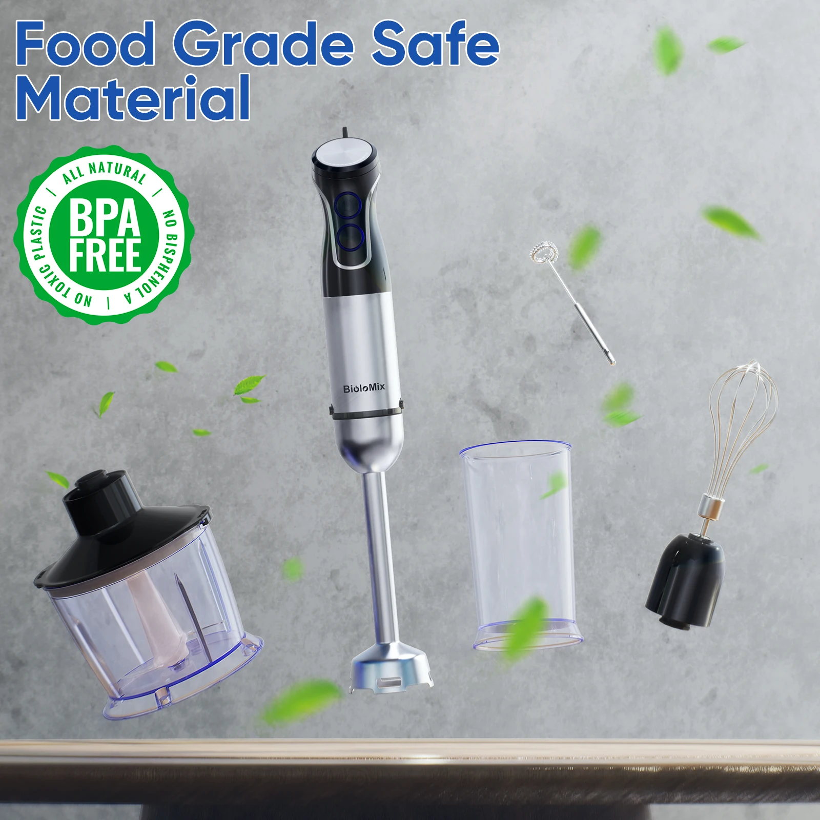 Crafted with high-quality 304 stainless steel for the blades, this immersion blender is built to last. All detachable components are designed for easy cleaning, with most being dishwasher safe. Please refer to the user manual for specific cleaning instructions for each attachment. The Biolo Mix 5 in 1 Immersion Hand Blender is more than just an appliance; it's an investment in culinary efficiency and enjoyment.