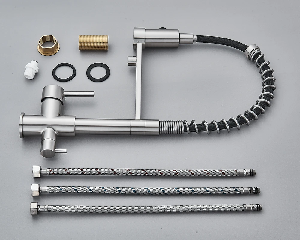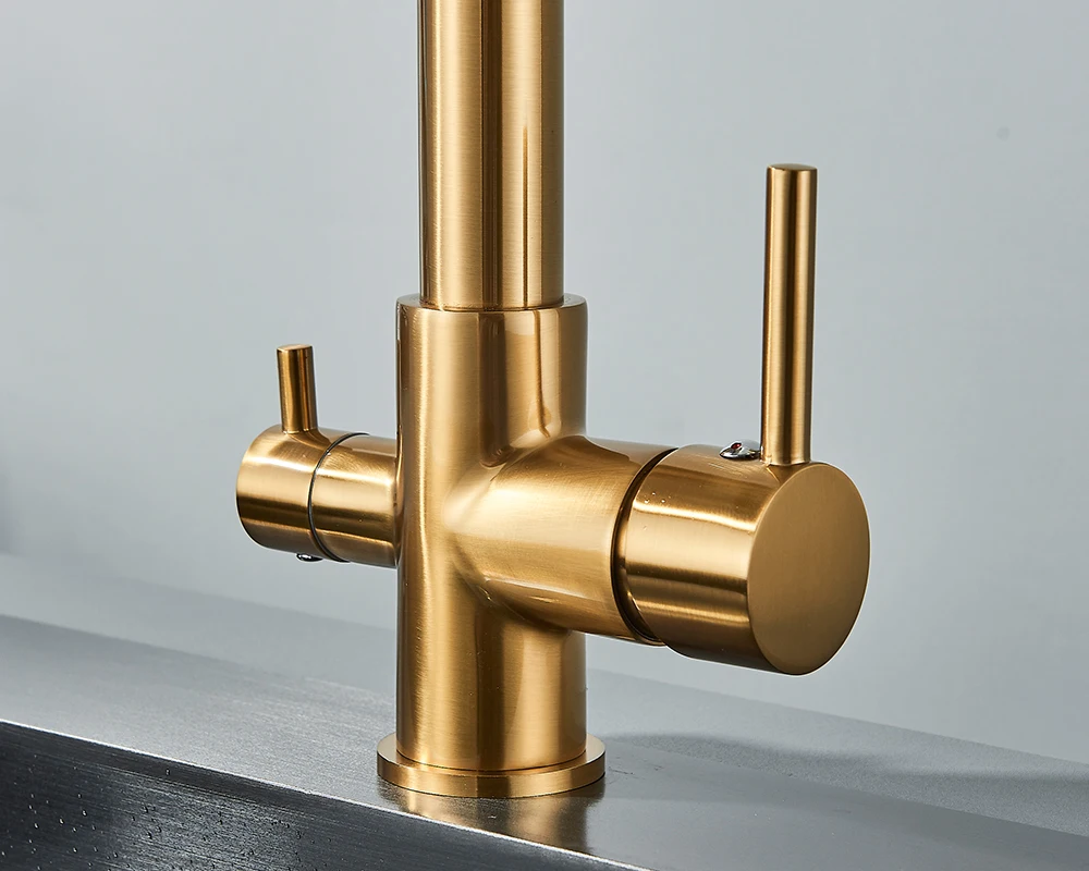 Experience a new standard of water quality and kitchen functionality with our premium Filtered Kitchen Water Filter Faucet. This sophisticated dual-spout mixer faucet is meticulously designed to deliver purified water directly from your tap, transforming your daily hydration and cooking experience. Say goodbye to bottled water and hello to effortless access to clean, crisp, and healthy water, all while enhancing the aesthetic appeal of your kitchen.