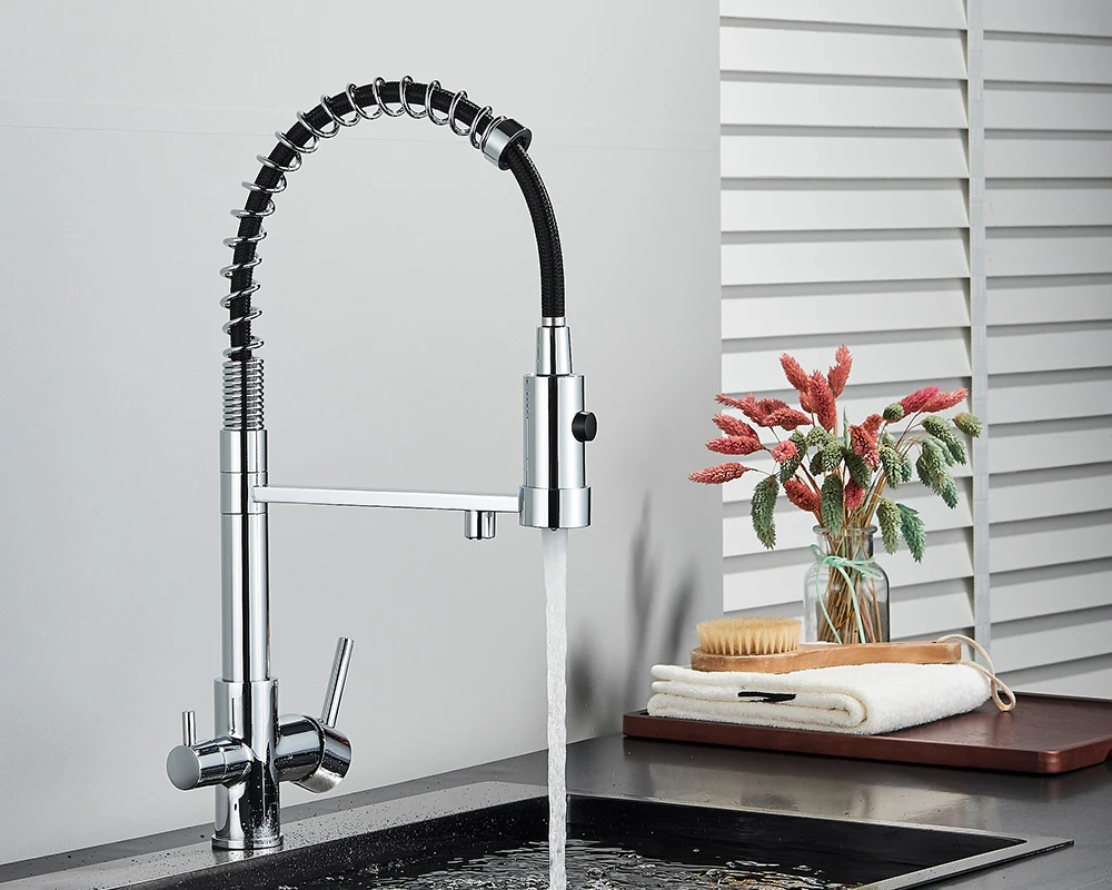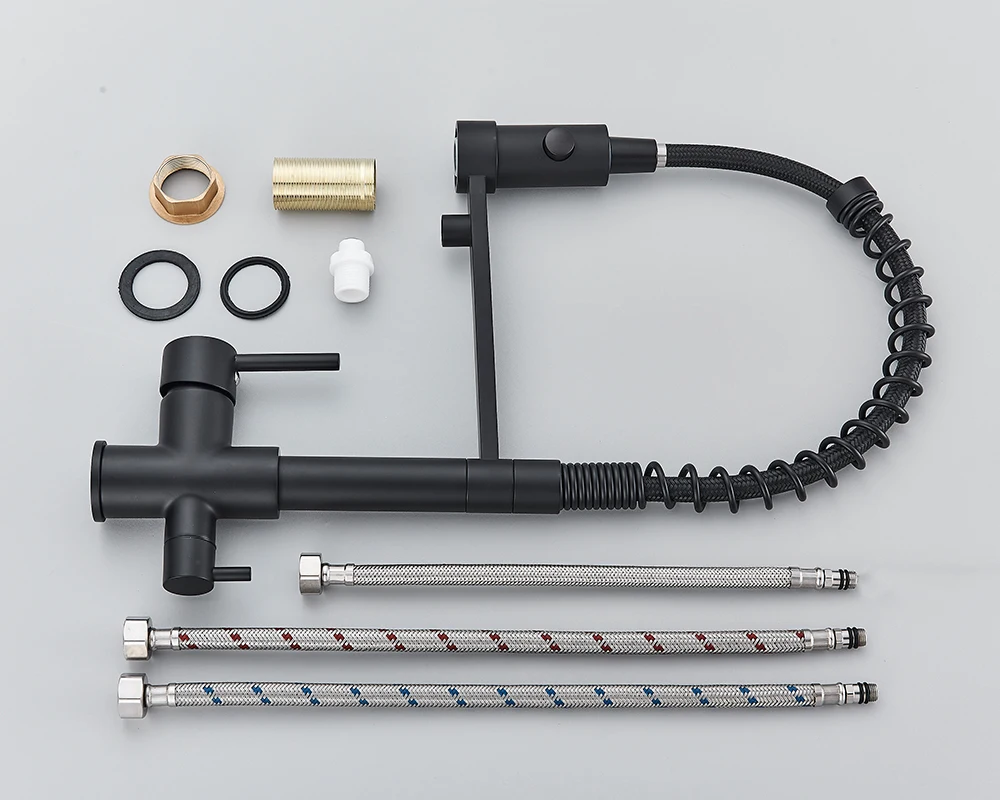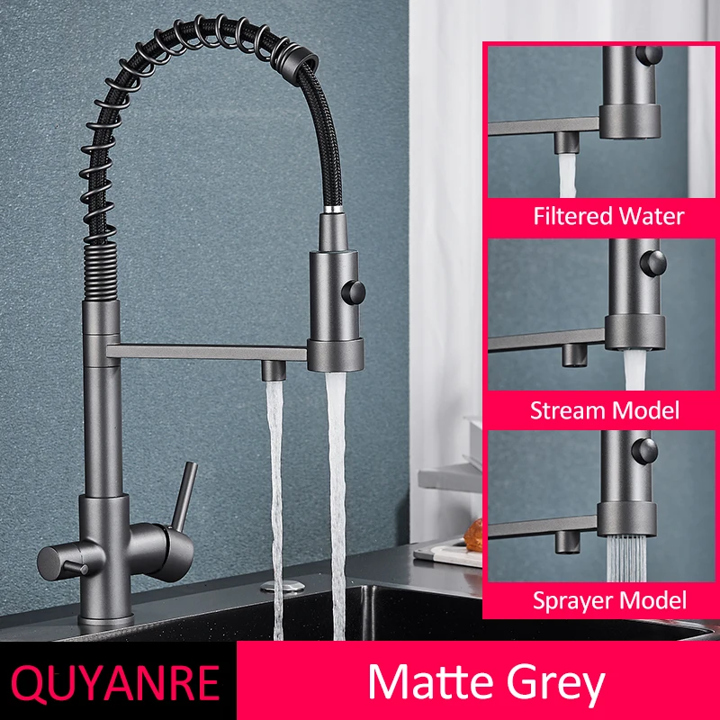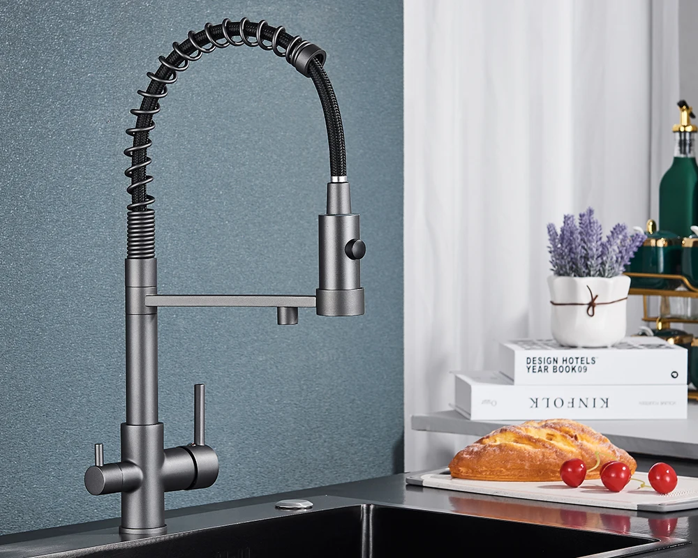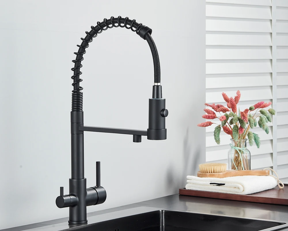 Black Filtered Kitchen Water Filter Kitchen Faucets Dual Spout Filter Faucet Mixer Water Purification Water Crane For Kitchen