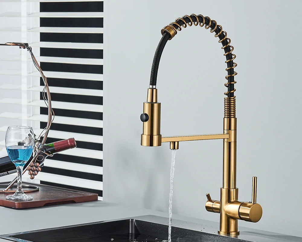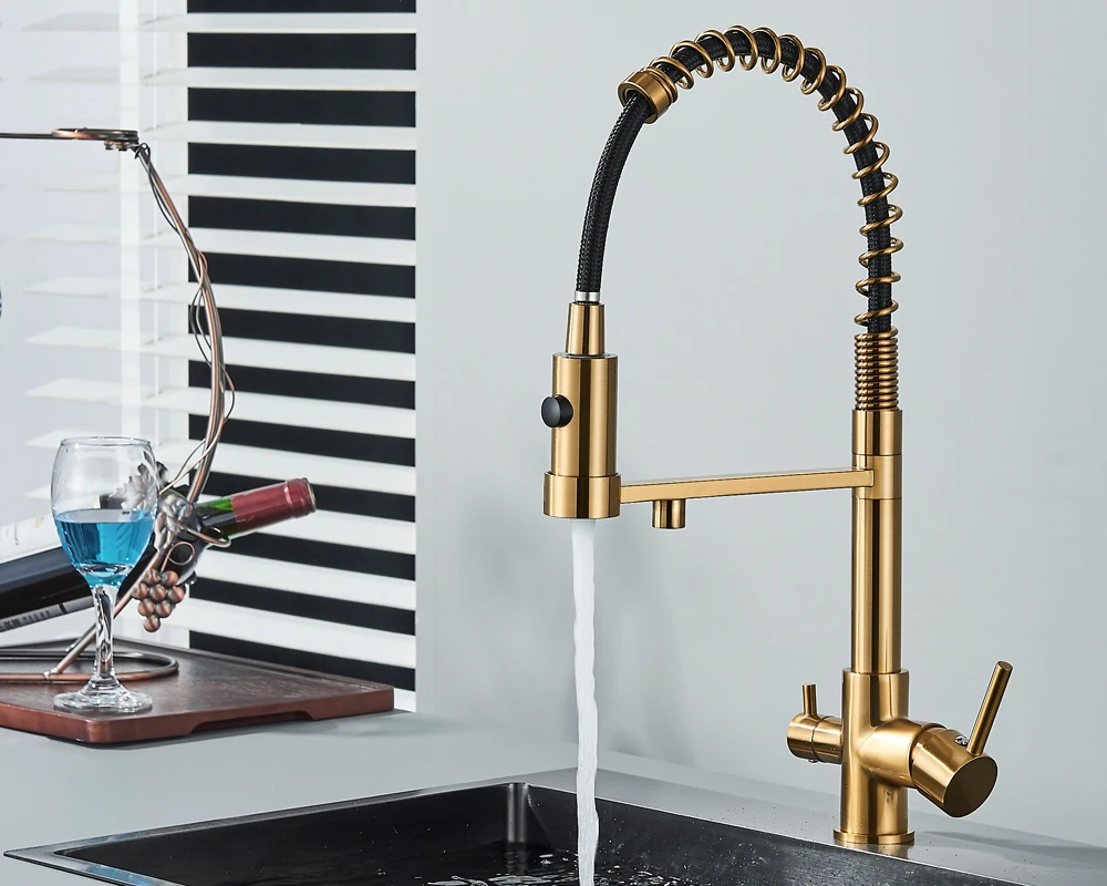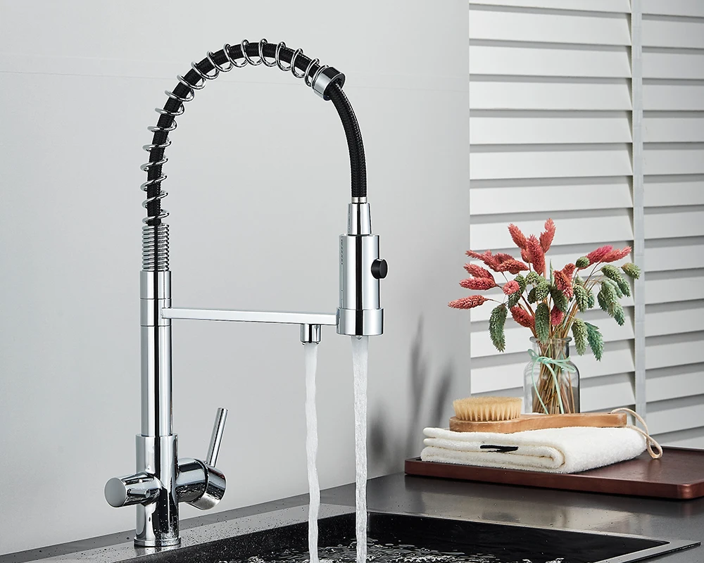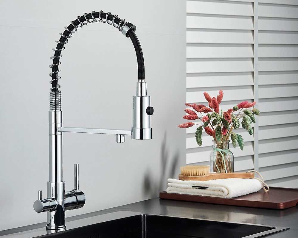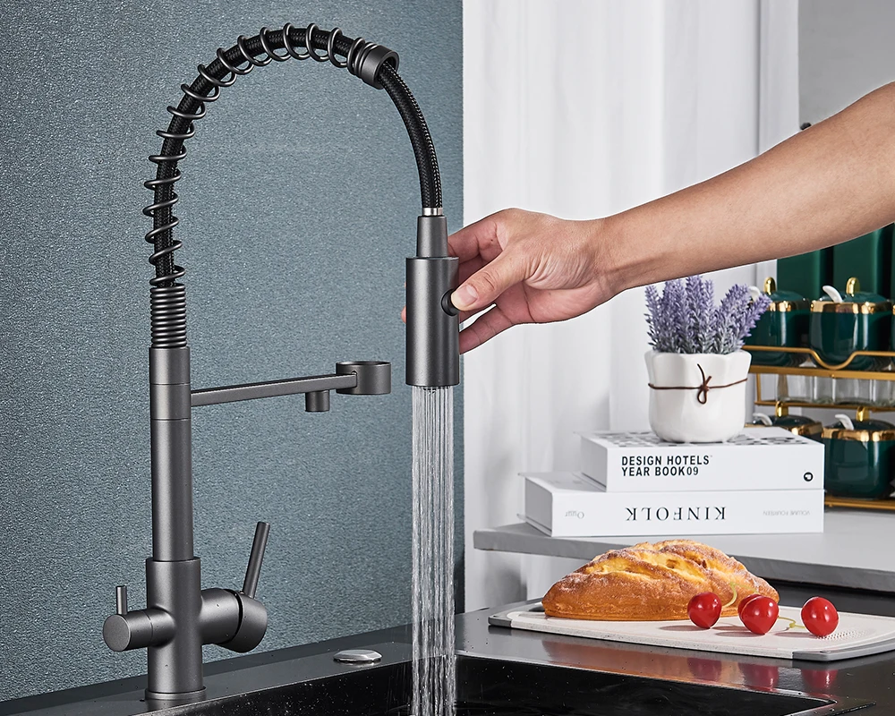 Black Filtered Kitchen Water Filter Kitchen Faucets Dual Spout Filter Faucet Mixer Water Purification Water Crane For Kitchen