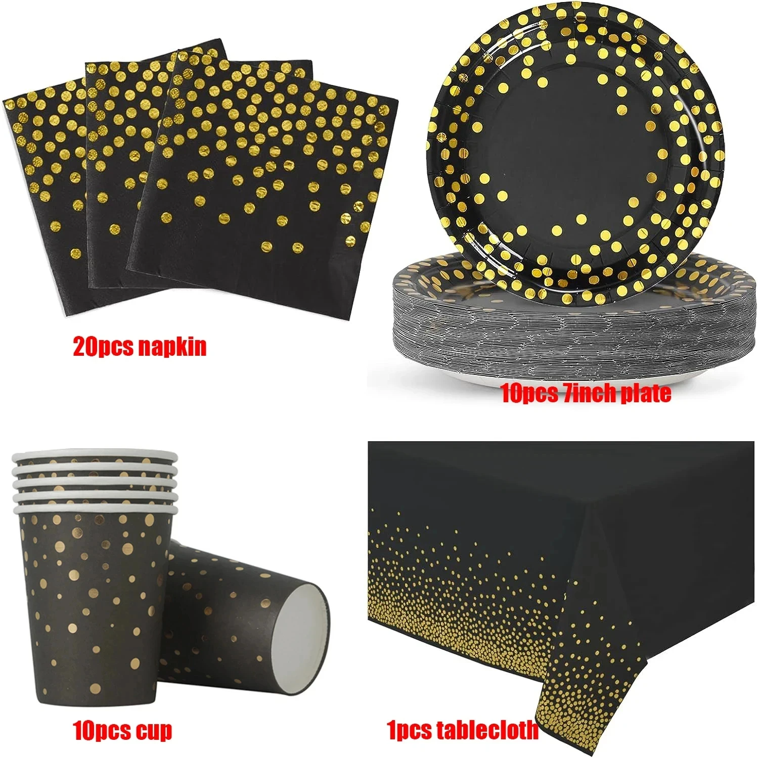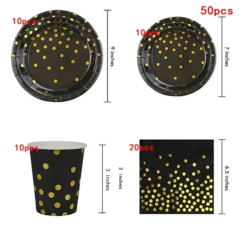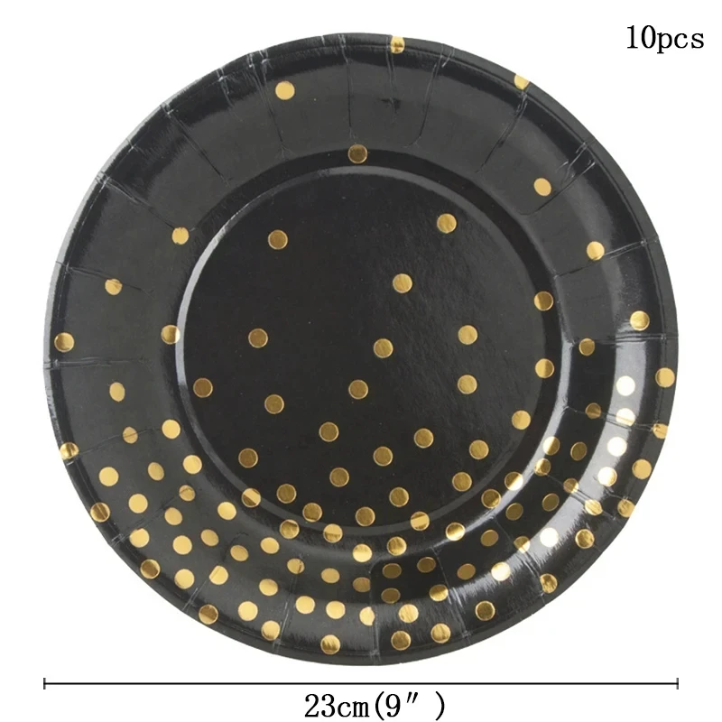 Black Gold Party Supplies Disposable Tableware Set Paper Plates Cups Napkins Tablecloth Adult Kids Birthday Party Wedding Decor