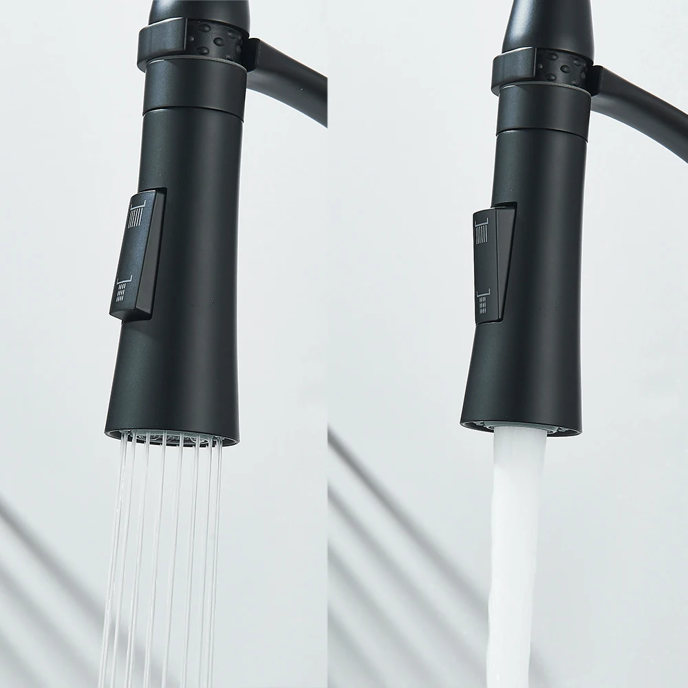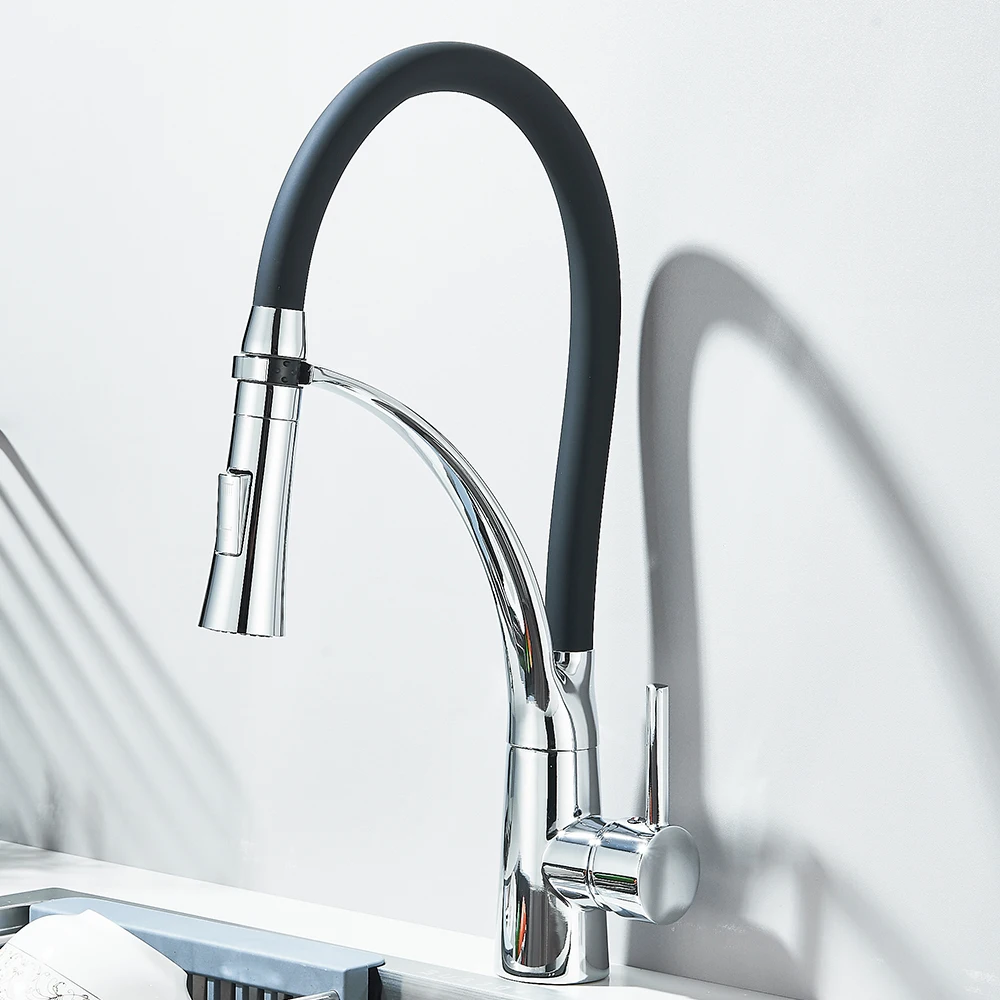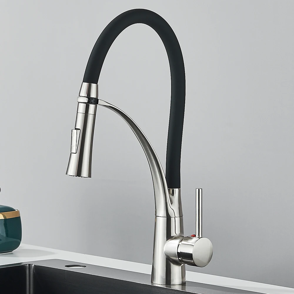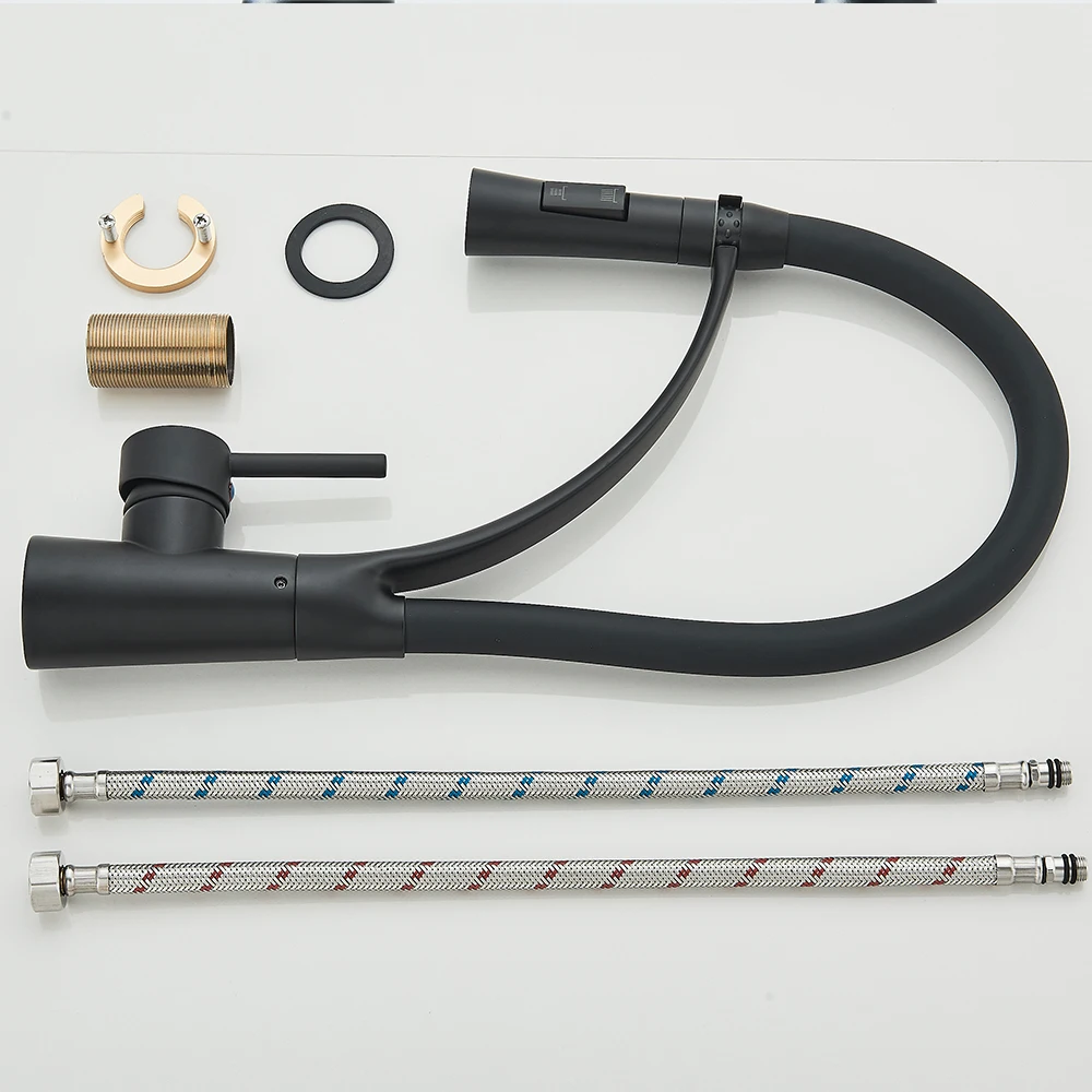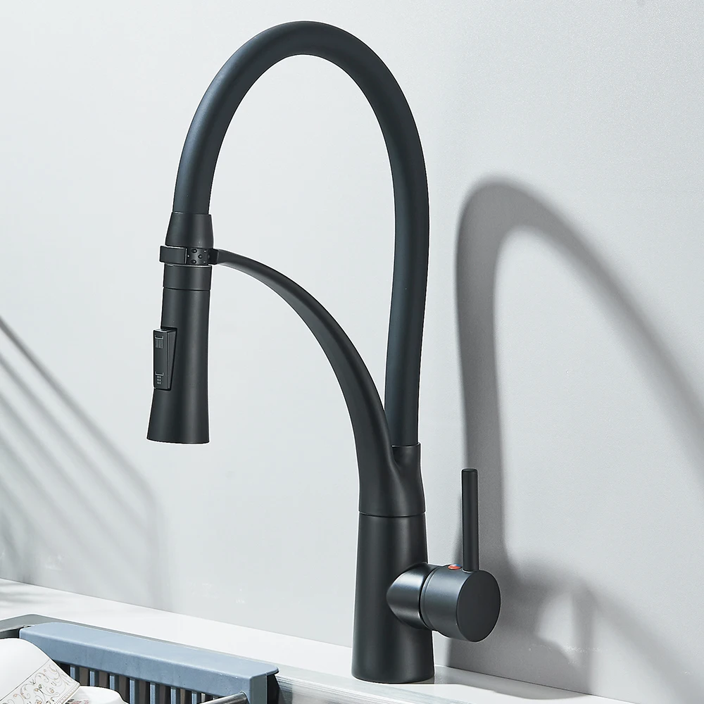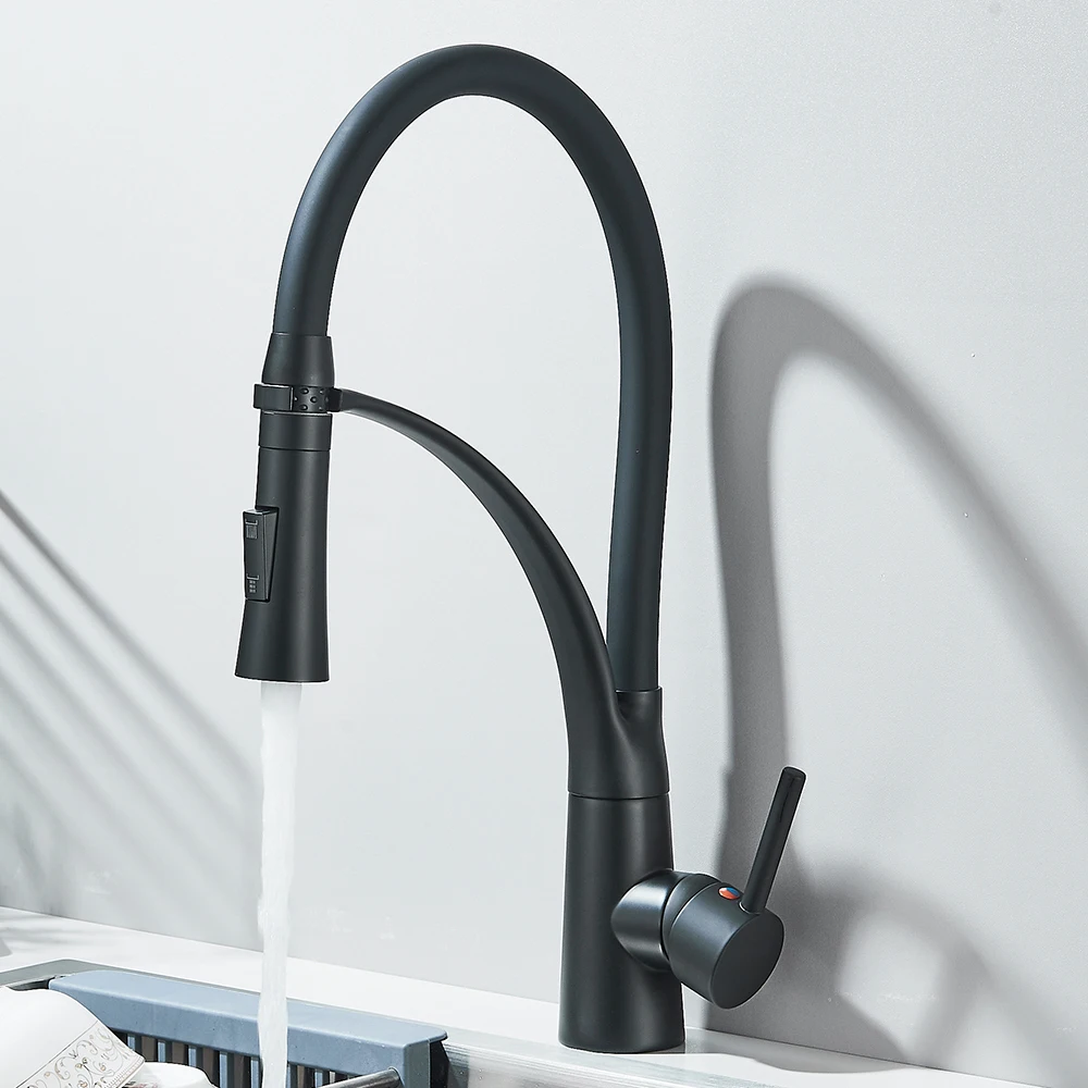 Black Rubber Kitchen Faucet Mixer Tap Rotation Pull Down Stream Sprayer Taps Hot Cold Water Tap One Handle Kitchen Tap