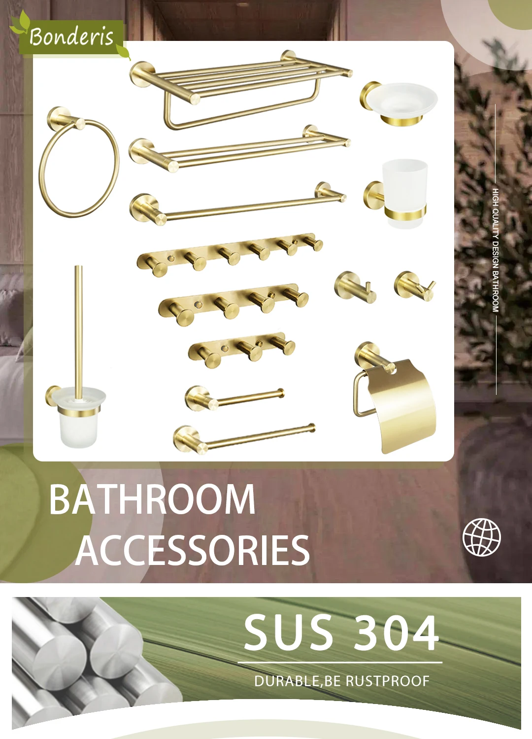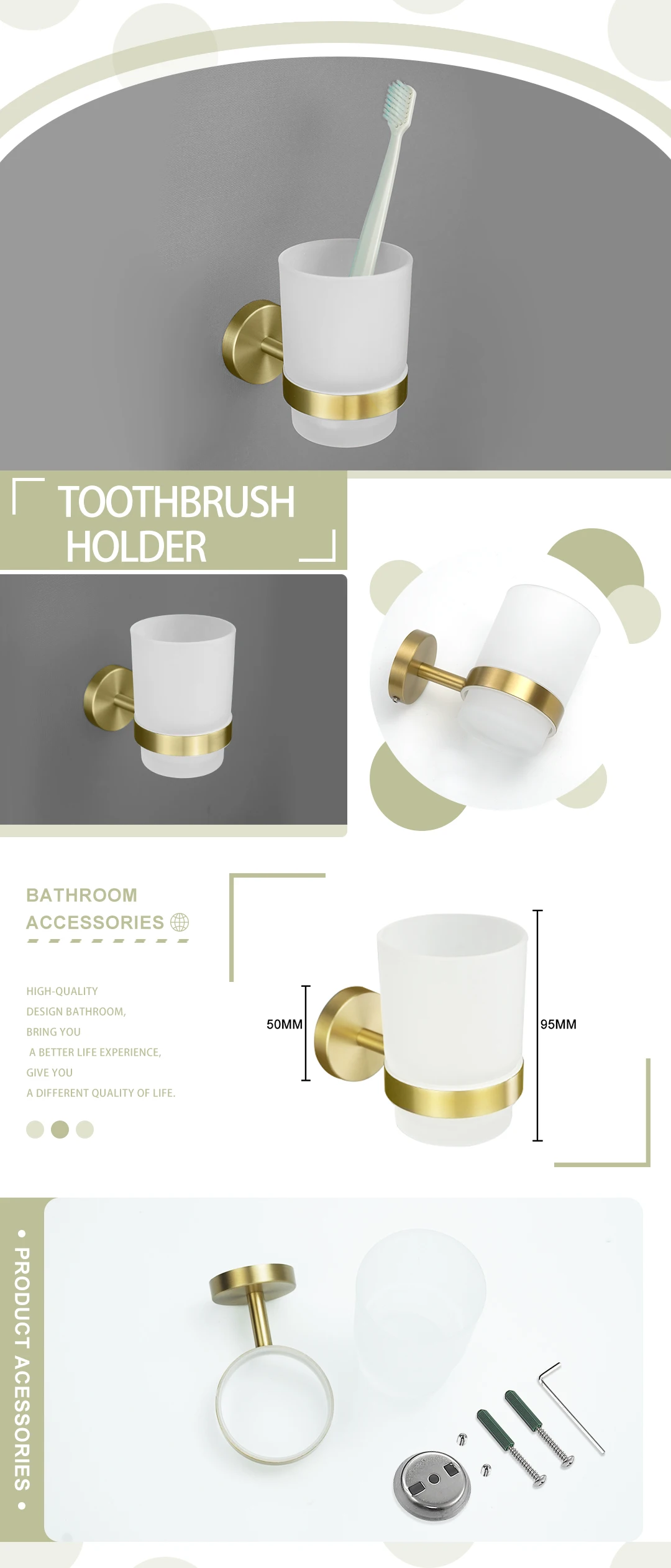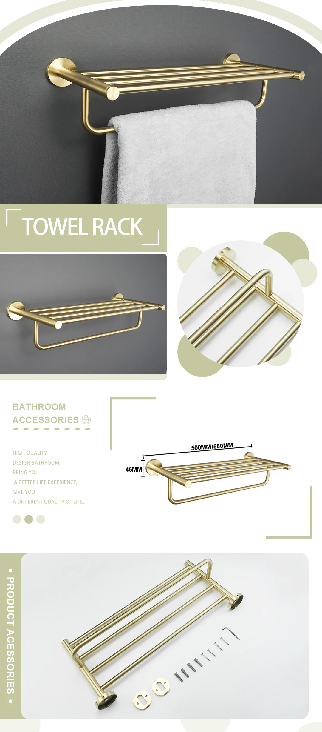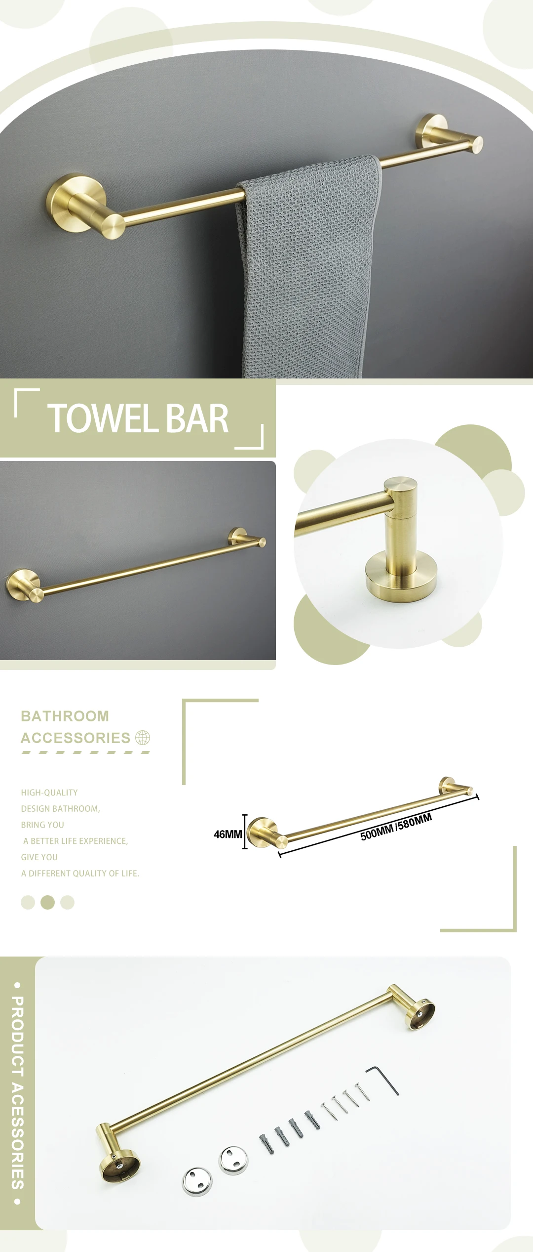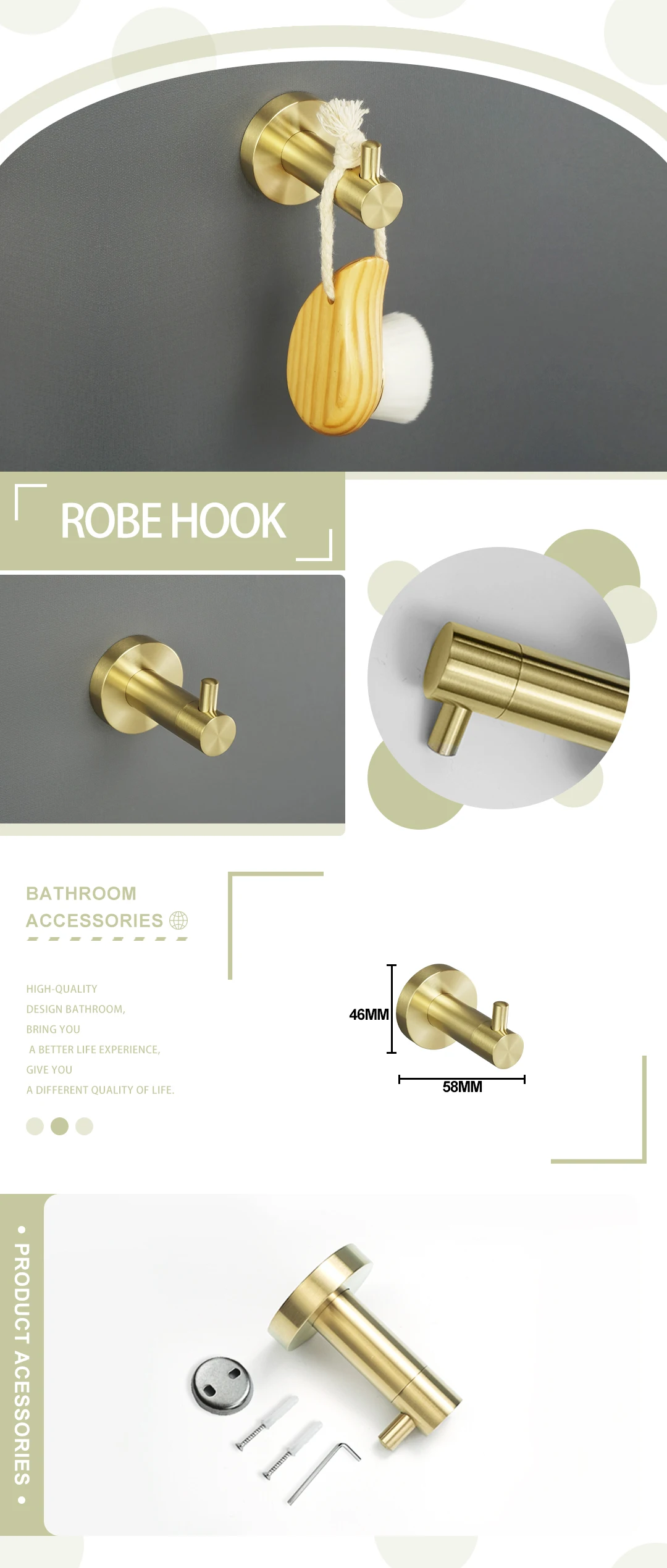 - Comprehensive Collection: Choose from a wide array of essential accessories including towel rings, towel bars (single and double), robe hooks, toilet brush holders, cup holders, soap dishes, and paper holders, available in various configurations to suit your needs.