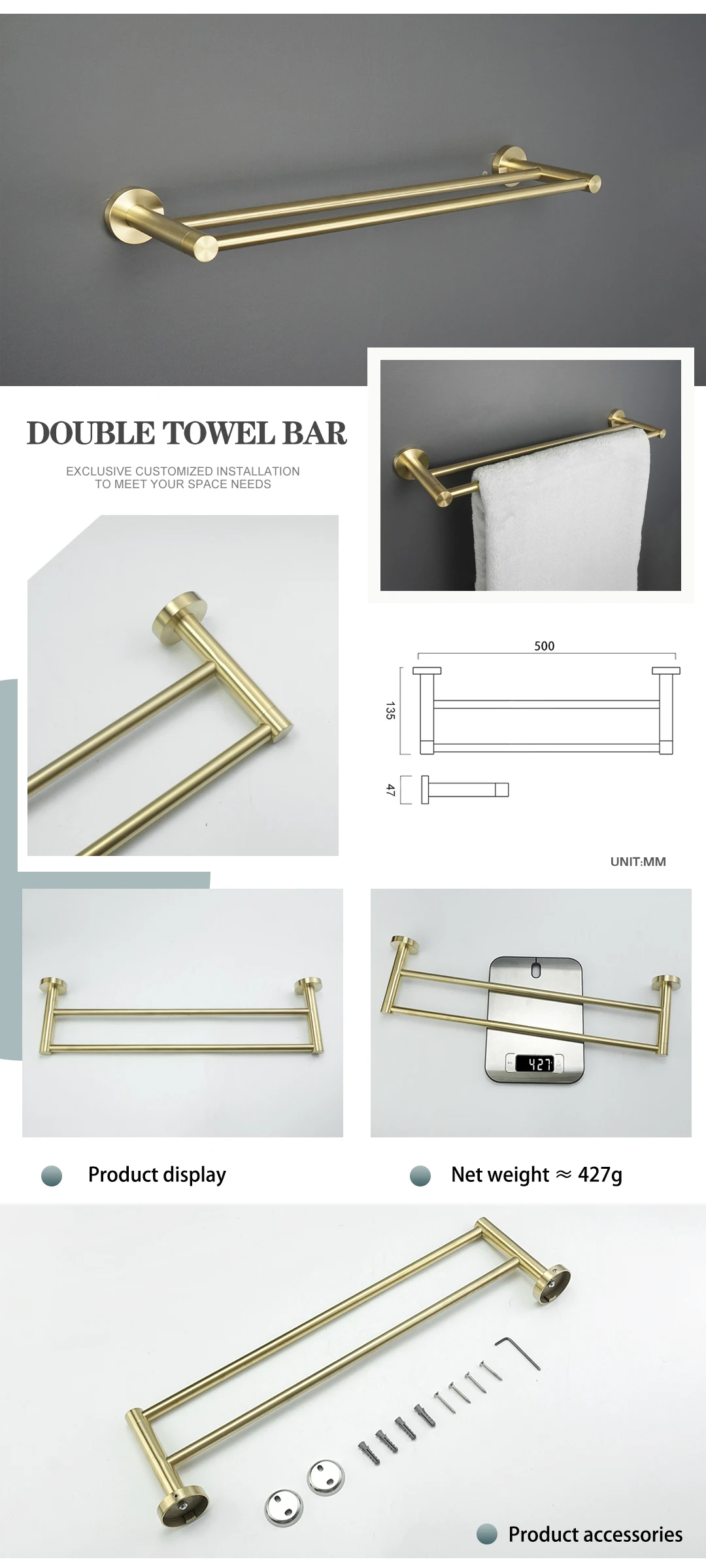 - Premium Brushed Gold Finish: A lustrous and durable finish that resists tarnishing and corrosion, providing enduring beauty.