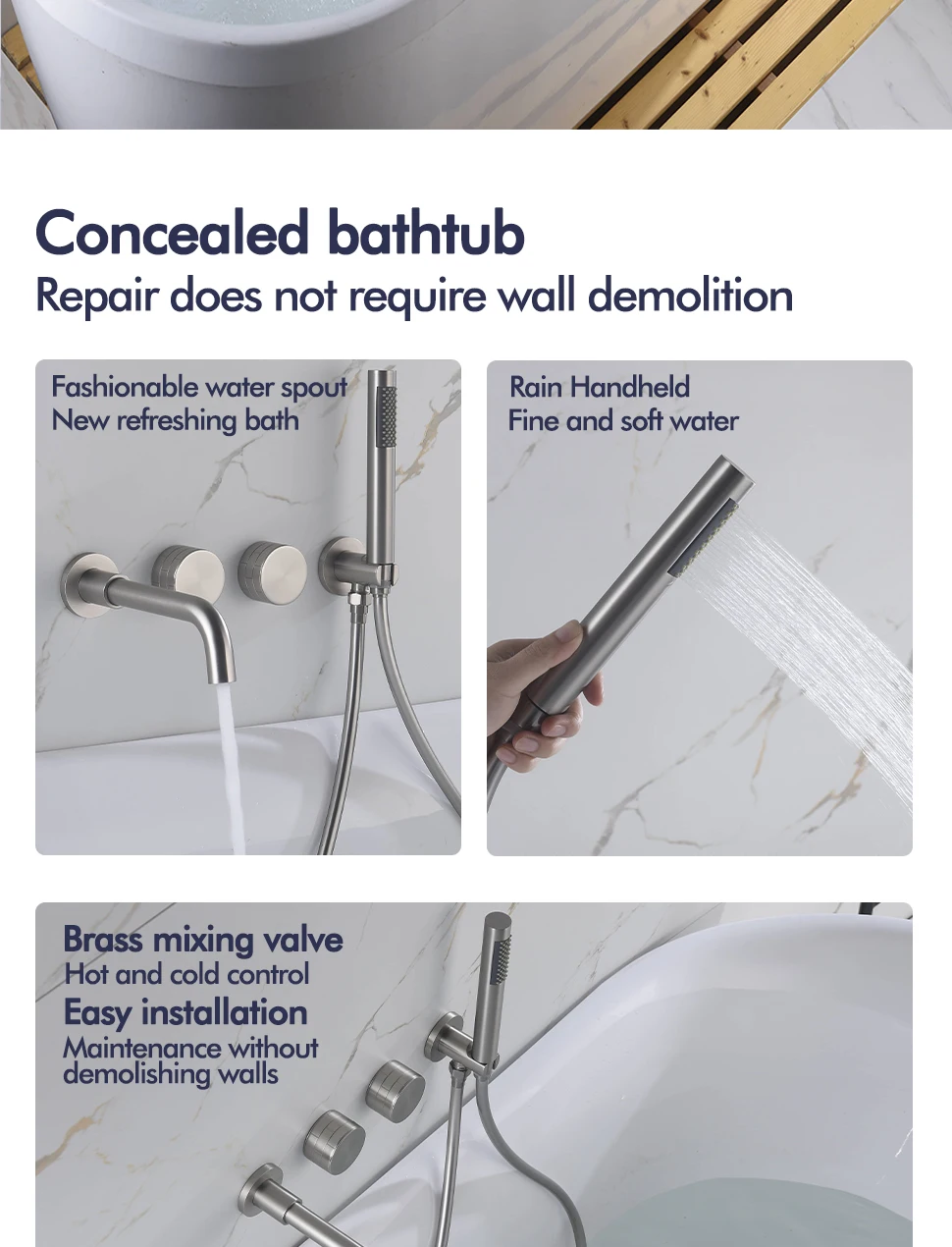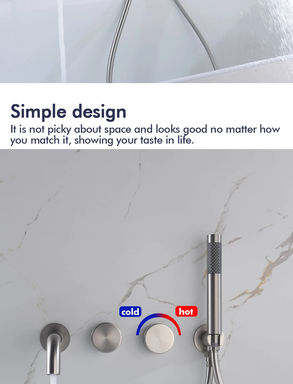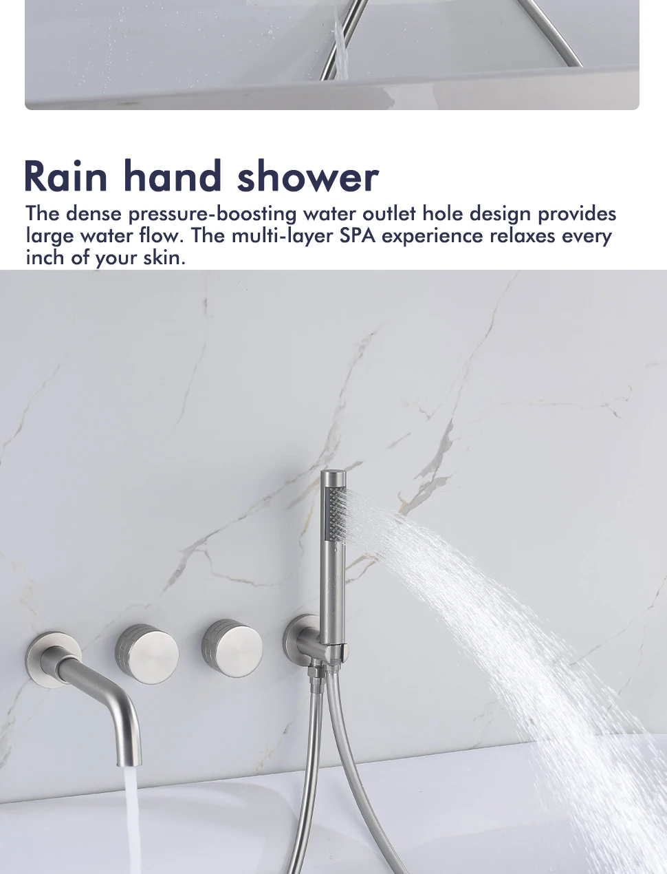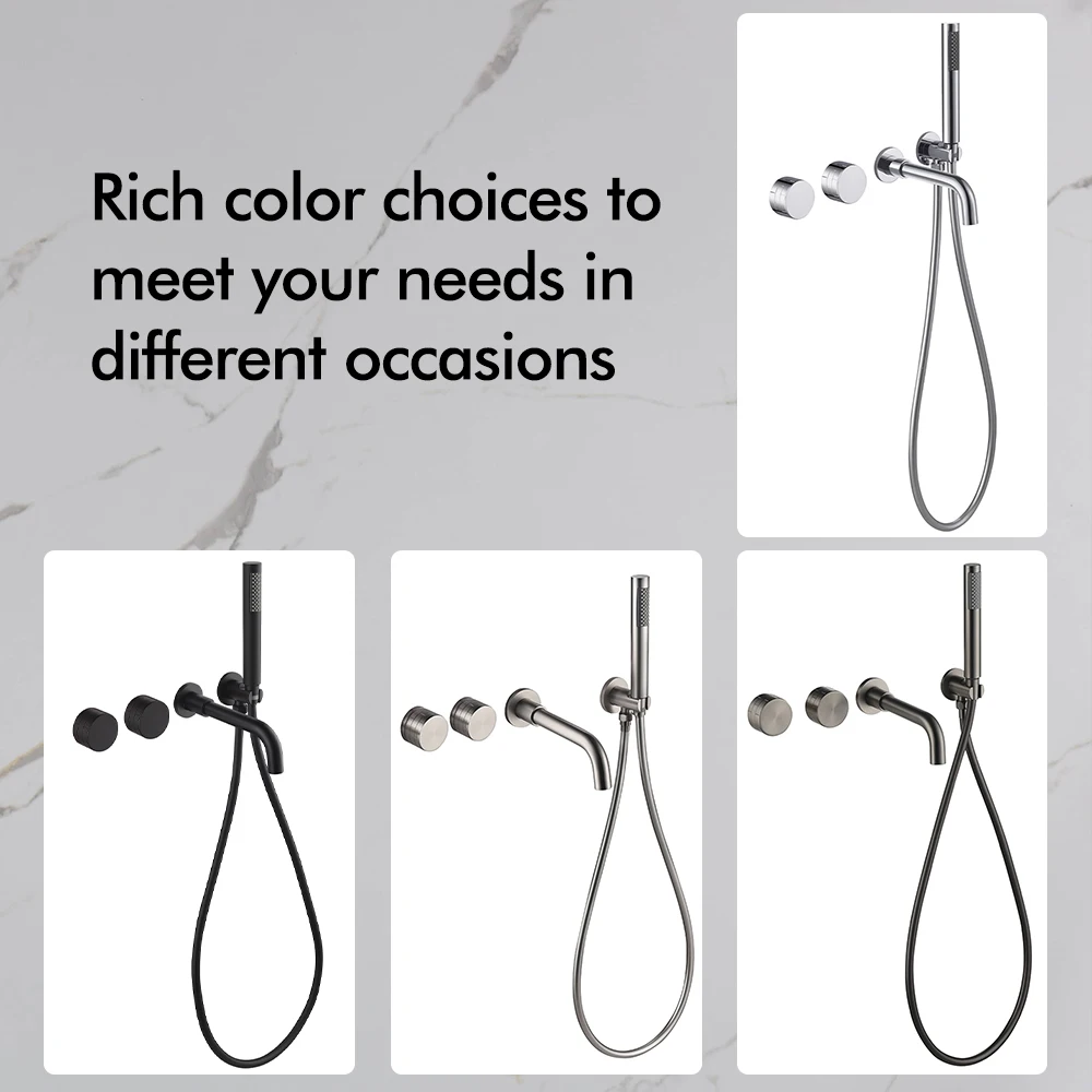 Transform your bathroom into a spa-like sanctuary with this exquisite Brushed Nickel Bathtub Tap system. Designed for both aesthetic appeal and unparalleled functionality, this wall-mounted faucet seamlessly integrates a luxurious bathtub spout with a convenient handheld shower, offering a complete and versatile bathing solution. Experience the perfect blend of modern design and practical utility, crafted to enhance your daily routine.