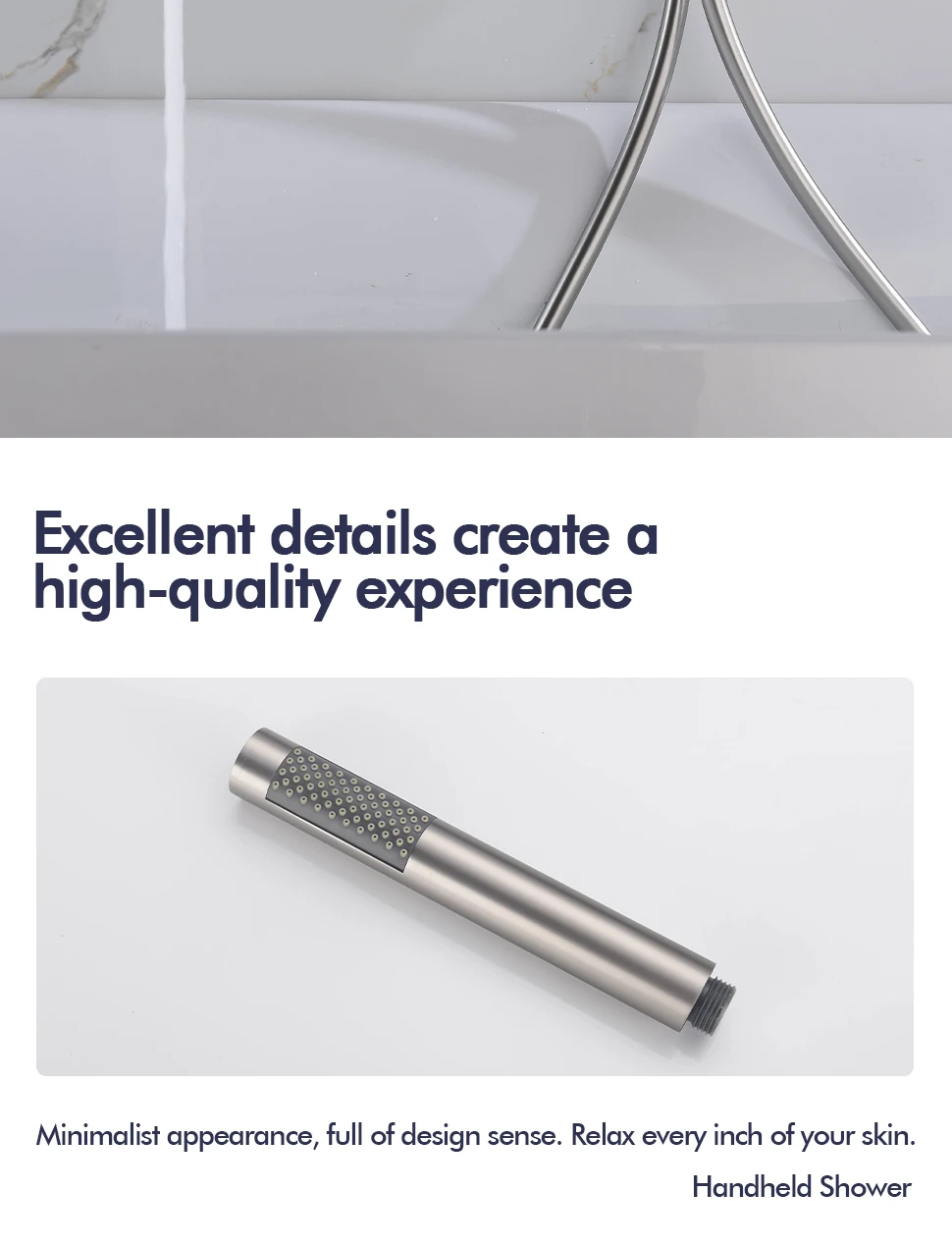 – Integrated handheld showerhead with flexible hose for targeted rinsing and easy cleaning.