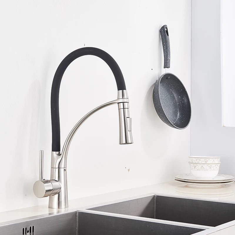 h1Brushed Nickel Kitchen Faucet Mixer Tap with Pull-Down Sprayer