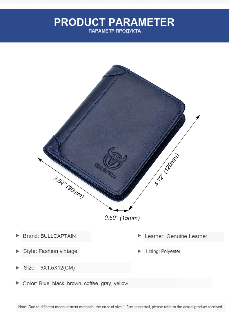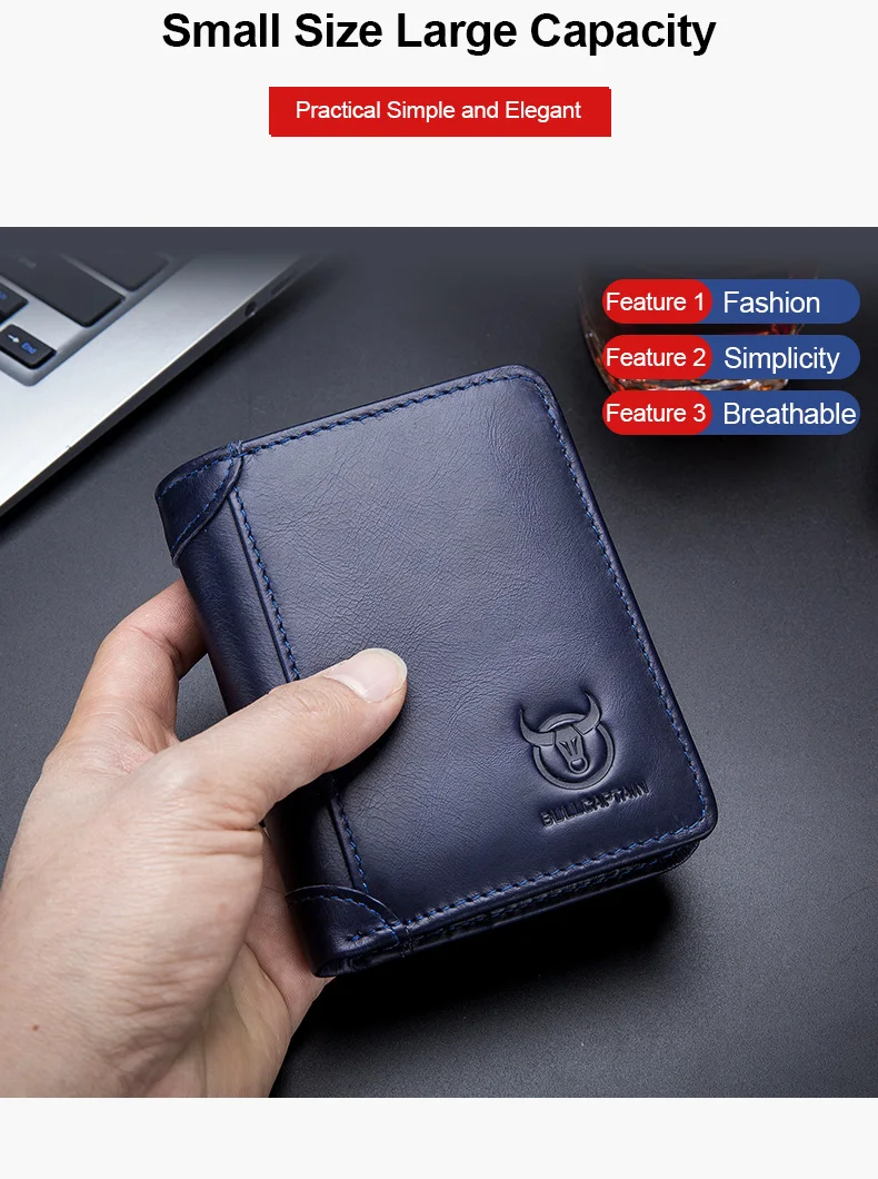 The BULLCAPTAIN Genuine Leather Man Wallet combines style, functionality, and security in a sleek, compact design. Crafted for the discerning gentleman, this small mini card holder is perfect for organizing your essentials while maintaining a sophisticated look. Whether you need a reliable daily wallet or a convenient travel companion, this high-quality purse pocket fits seamlessly into your lifestyle.