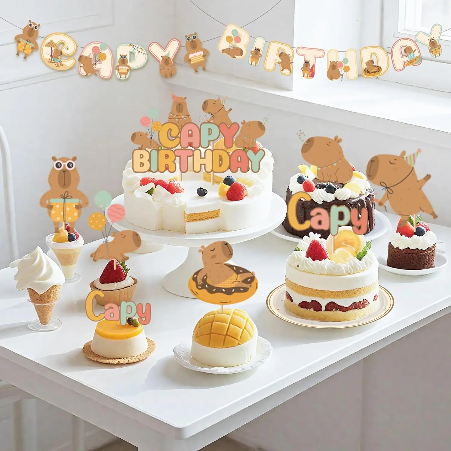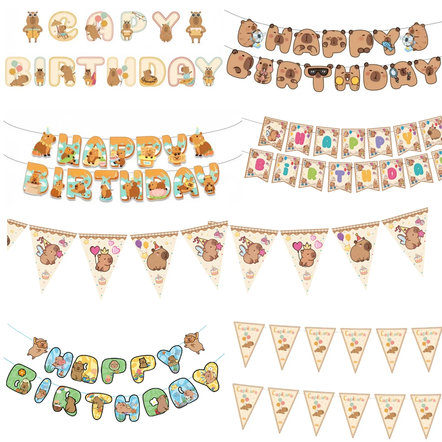 Capybara Birthday Banner: Adorable Capybara Party Theme Supply Flag Pennant Garland Flag Hanging Decor for Capybara Birthday Girl Party Favors