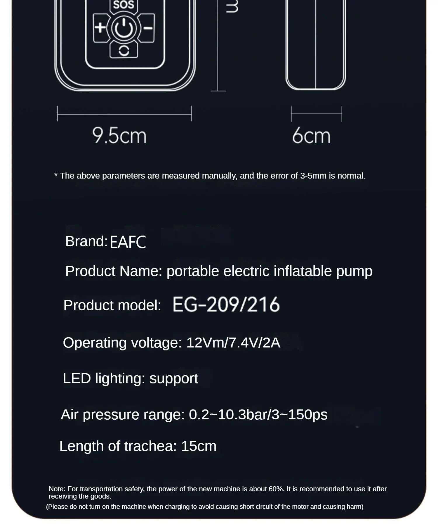 Introducing the Car Air Pump Air Compressor 12V 150 PSI, a versatile and compact electric inflator designed to keep your tires, sports balls, and inflatable items perfectly inflated with ease. This wireless, portable tire inflator is an essential tool for motorcycle riders, cyclists, and car owners who value convenience and reliability on the road or off. Whether you need to quickly inflate a car tire, bicycle tube, or sports ball, this pump delivers powerful performance without the hassle of cords or bulky equipment.