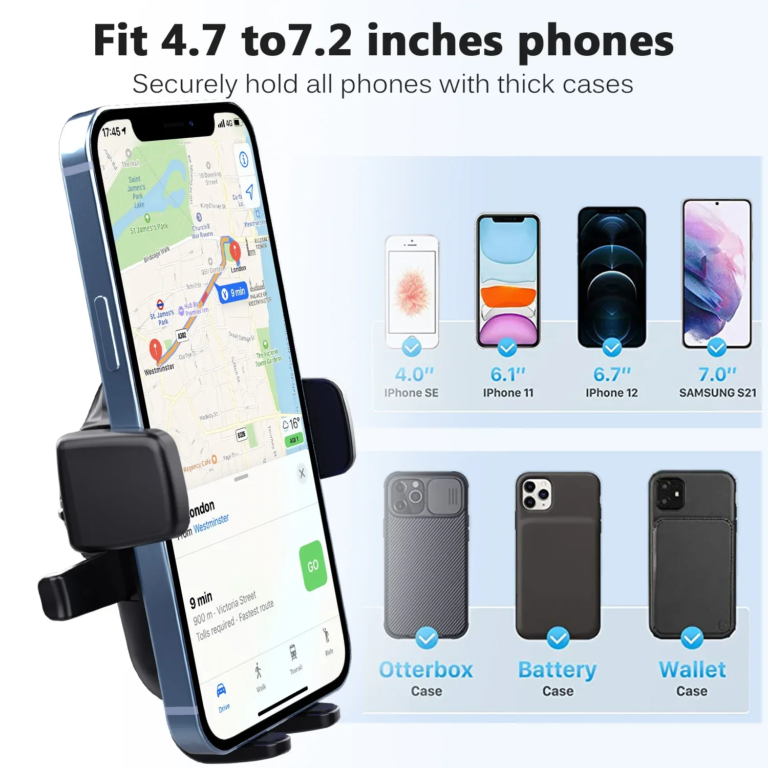 – Universal Compatibility: Accommodates a wide range of smartphones, from 4.7 inches to 7 inches, including popular models like the iPhone.