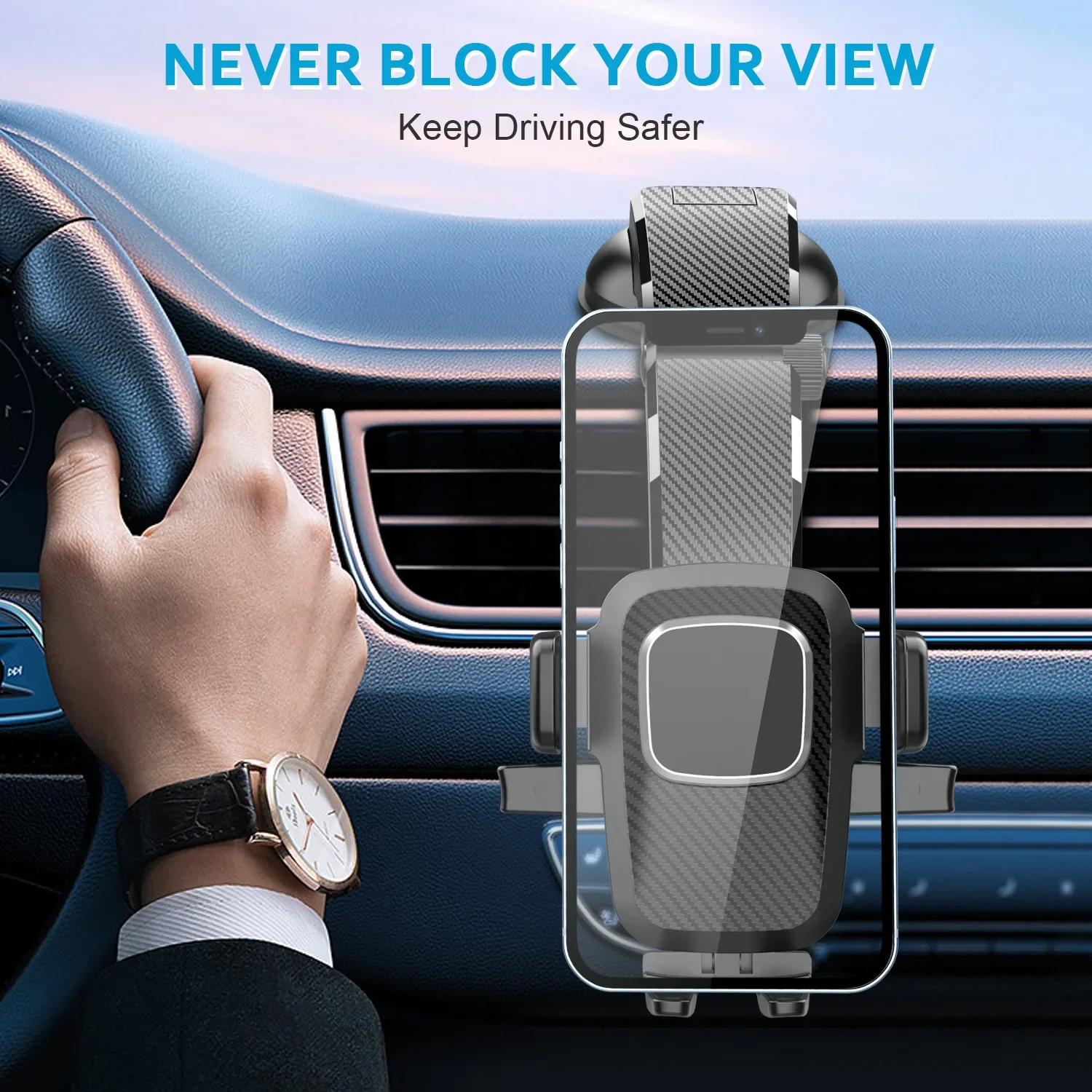 This car phone holder is more than just an accessory; it’s an essential tool for modern driving. Enhance your safety by keeping your eyes on the road and your hands on the wheel. Effortlessly follow GPS directions, manage hands-free calls, or control your music playlist with a glance. The adjustable clip ensures a snug fit for your device, while the sturdy base provides unwavering stability on any surface.