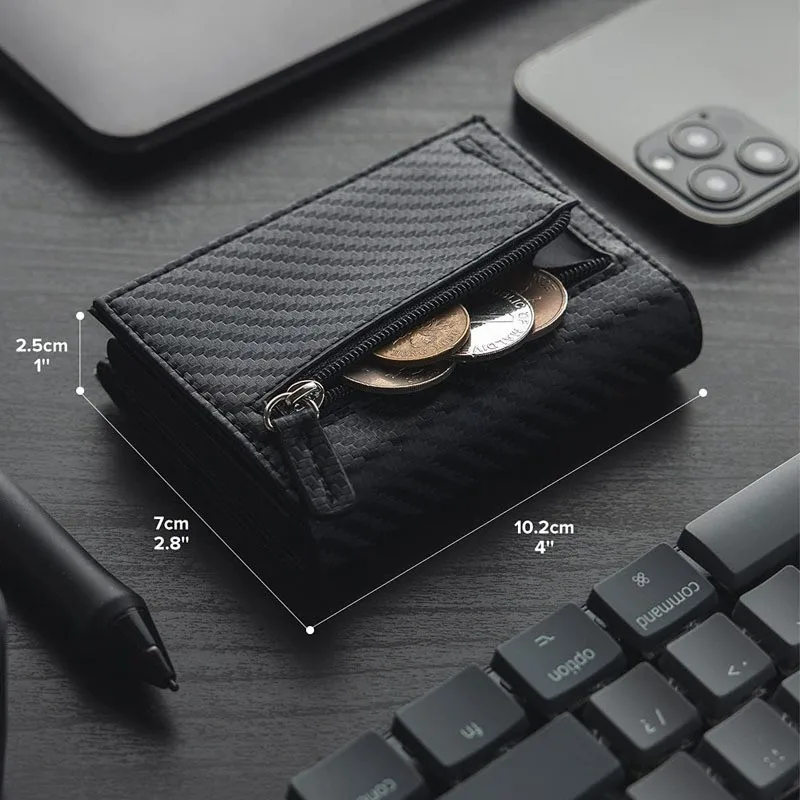 Carbon Fiber & Aluminum Men’s Bifold Wallet – RFID Blocking Automatic Pop-Up Cardholder, Coin Compartments, Business Money Purse