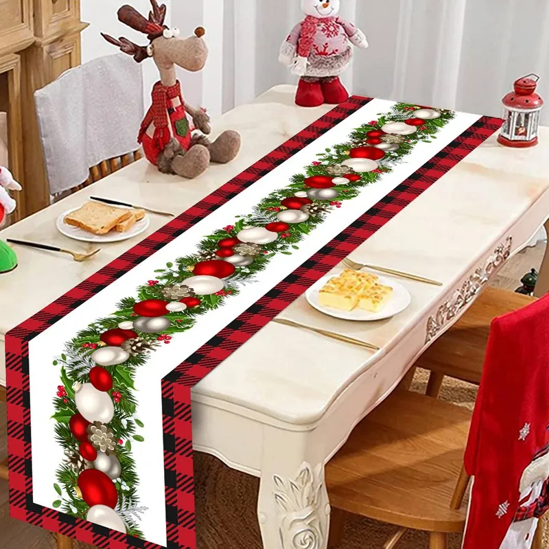 Christmas Ball Buffalo Plaid Table Runner – Festive Table Decor for a Merry Christmas & Happy New Year