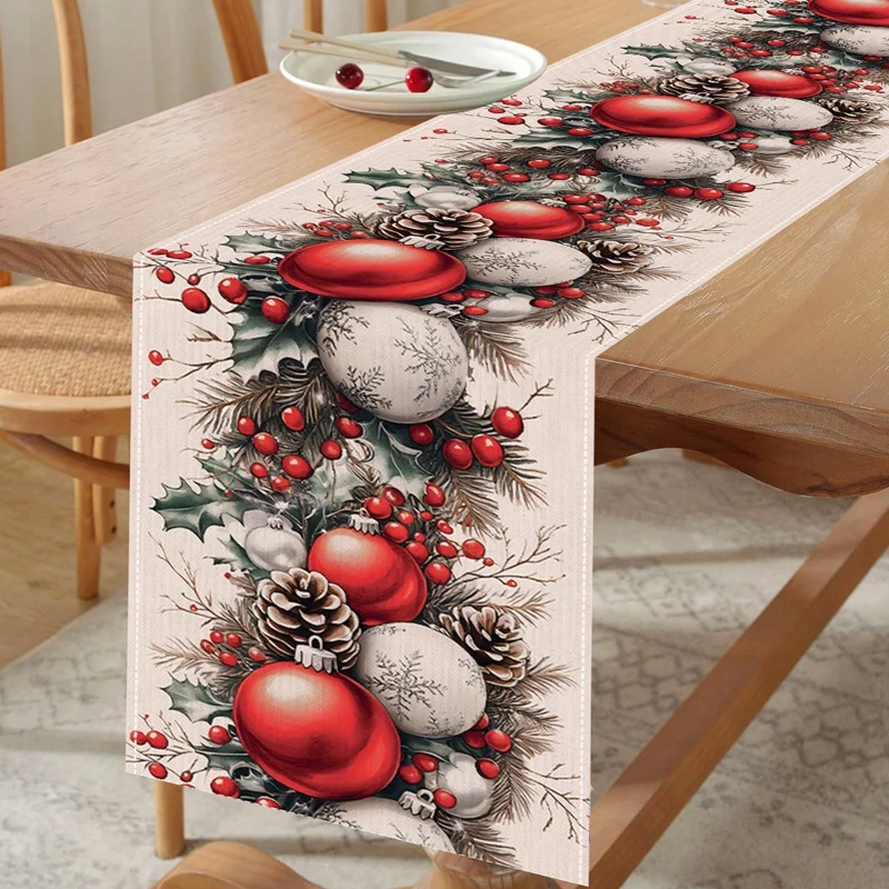 H3: Embrace the spirit of the season with our exquisite Merry Christmas Linen Table Runner. Designed to be the centerpiece of your festive gatherings, this runner effortlessly blends timeless elegance with the joyful spirit of Christmas. Whether you're hosting a formal holiday dinner or a cozy family brunch, this runner will transform your table into a scene of seasonal celebration, setting the perfect backdrop for unforgettable memories. Its charming design and premium quality make it an essential addition to your 2025 Christmas and 2026 New Year decor.