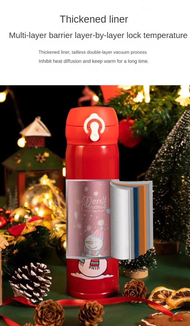 This insulated mug keeps your drinks at the perfect temperature, enhancing your drinking experience during chilly winter days or festive outings. Whether you’re enjoying hot cocoa by the fireplace or sipping iced beverages during holiday travel, this thermos cup ensures convenience and comfort. Its cheerful design also makes it a thoughtful and practical gift for children, encouraging hydration in a fun way while spreading holiday cheer.