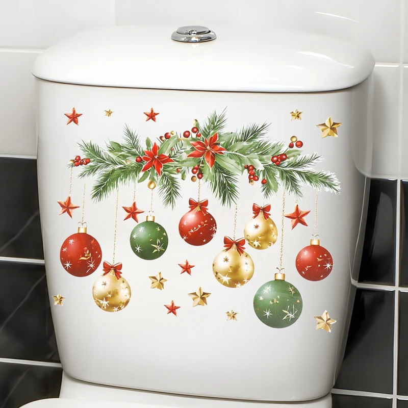 Christmas Toilet Sticker Merry Christmas Decoration for Home 2025 Pendant Xmas Sticker Ornament Navidad Natal New Year Gift 2026