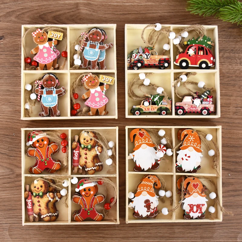 Christmas Wooden Pendants Gingerbread Man Gnomes Xmas Tree Hanging Oranment 2024 Noel Navidad Decorations for Home New Year Gift