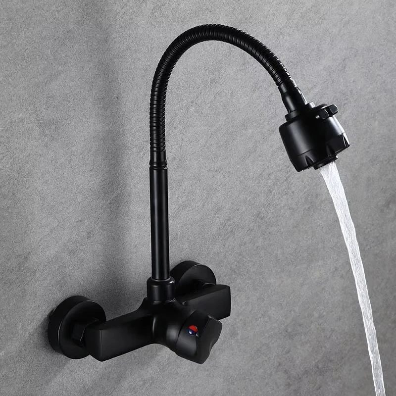Chrome/Black Wall-Mounted Swivel Kitchen Mixer Tap with Two-Way Spout and Flexible Hose