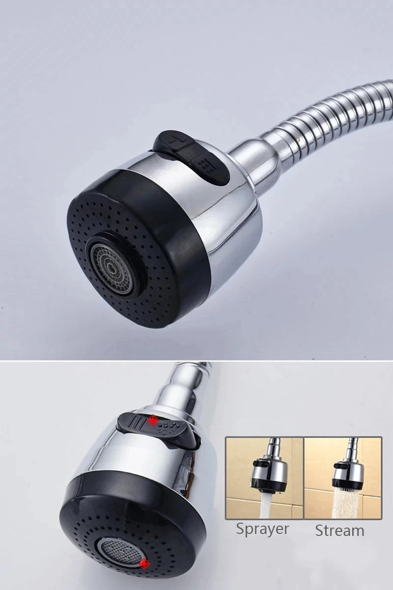 Experience the ultimate in kitchen convenience. The innovative two-way spout allows you to switch between a steady stream for filling pots and pans and a powerful spray for rinsing vegetables or tackling tough grime. The 360-degree swivel capability ensures you can easily direct water exactly where you need it, making dishwashing and food preparation more efficient than ever before. The integrated flexible hose adds another layer of adaptability, providing ample reach for even the deepest sinks.