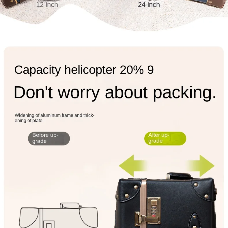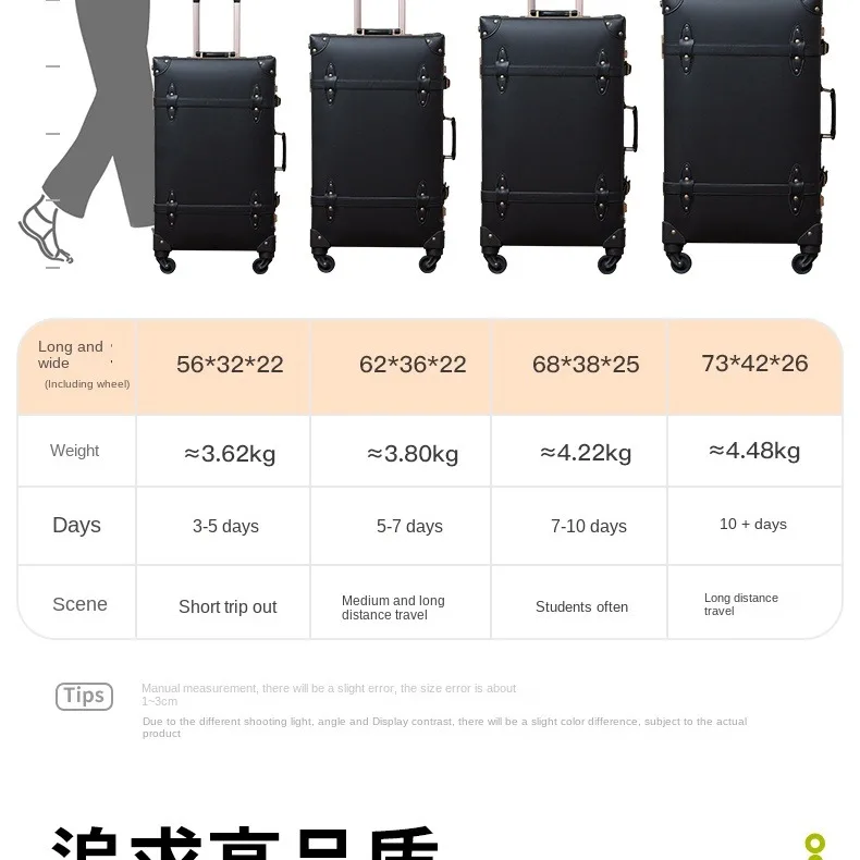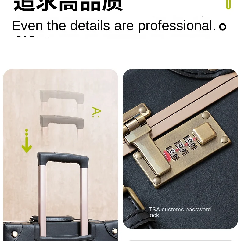 The Classic Retro Suitcase Travel Set is more than just luggage; it’s a statement. The combination of durable PP and PC materials ensures that your suitcase can withstand the rigors of travel, protecting your belongings from bumps and scrapes. The rich, handmade leather detailing not only enhances the vintage aesthetic but also signifies a commitment to quality craftsmanship.