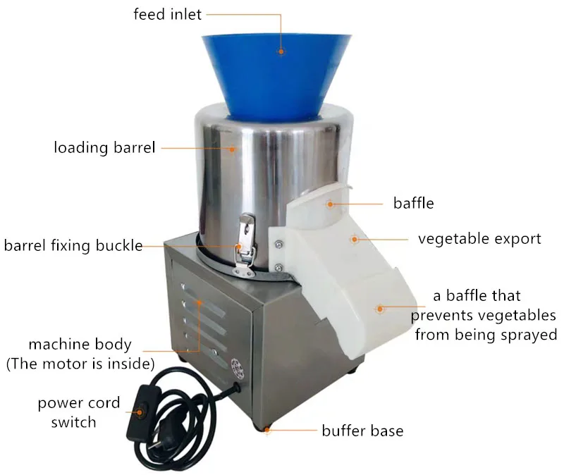 – Large capacity hopper designed to accommodate substantial amounts of produce.