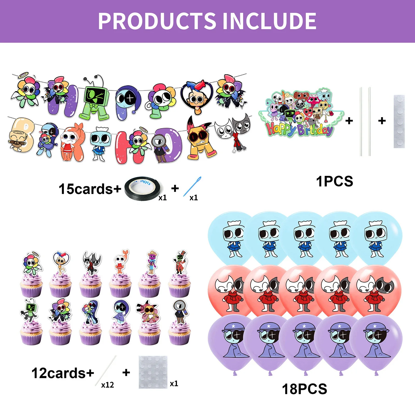 H1: Dandy's World Cute Dandy Horror Game Party Supplies Decoration Set
