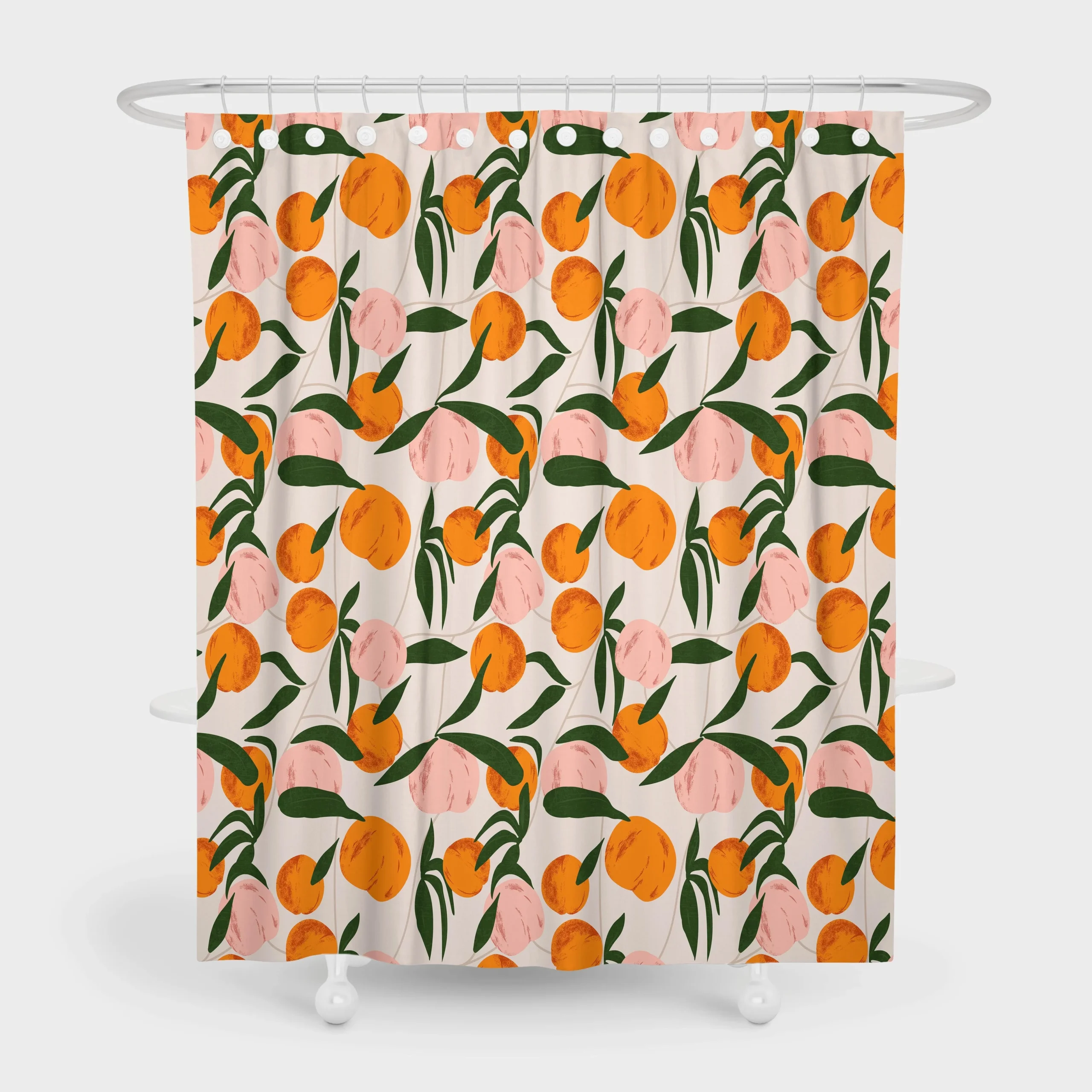 Elevate your bathroom’s style with this unique and refreshing shower curtain. The playful orange apple motif creates a lively and inviting atmosphere, making your bathroom a more enjoyable space. Its exceptional design not only adds a pop of color but also serves as a focal point, instantly enhancing the overall décor.