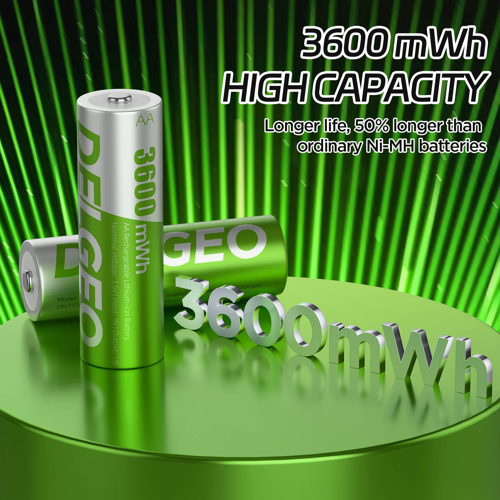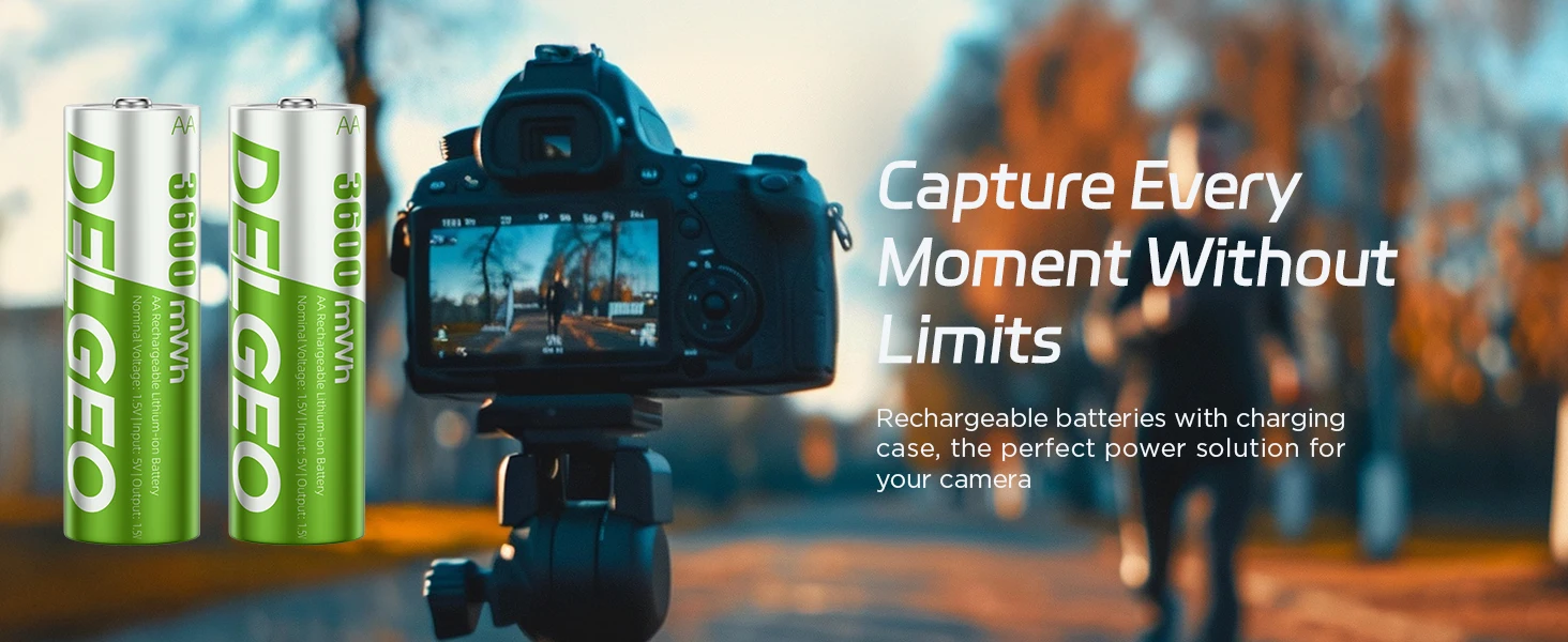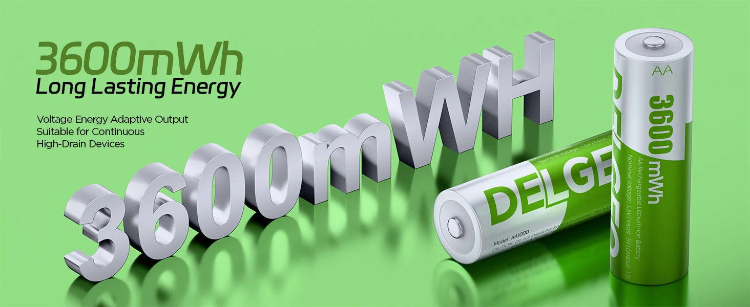 The Delgeo AA Rechargeable Lithium Battery is designed to provide long-lasting, efficient power for a wide range of devices including cameras, gamepads, GPS units, and toys. With a high capacity of 3600 mWh and a convenient charging case, this battery ensures you stay powered up without interruption, making it an indispensable accessory for everyday electronic use.